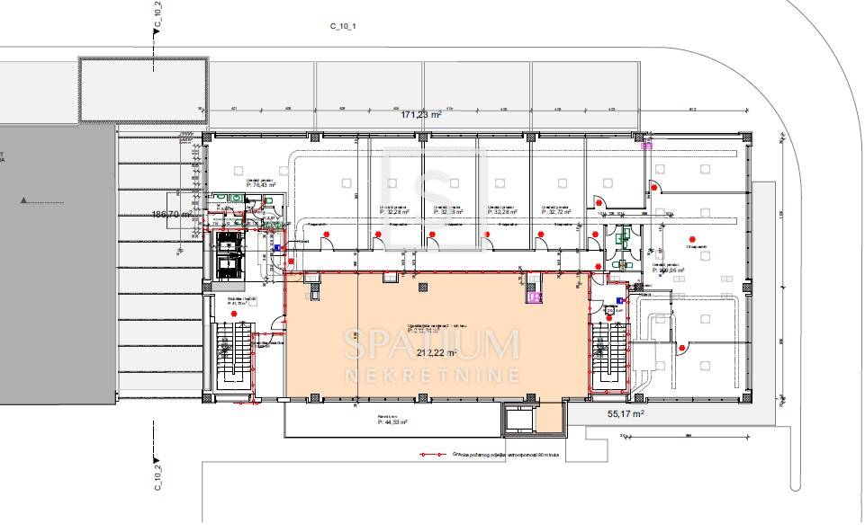 Nalazi se na frekventnoj poziciji na 1.katu poslovne zgrade. Ukupna površina je 213,84m2. Velike staklene površine garantiraju ugodnu radnu okolinu te osiguravaju dovoljnu količinu dnevnog svjetla.