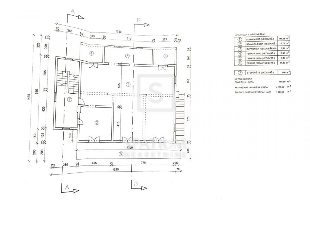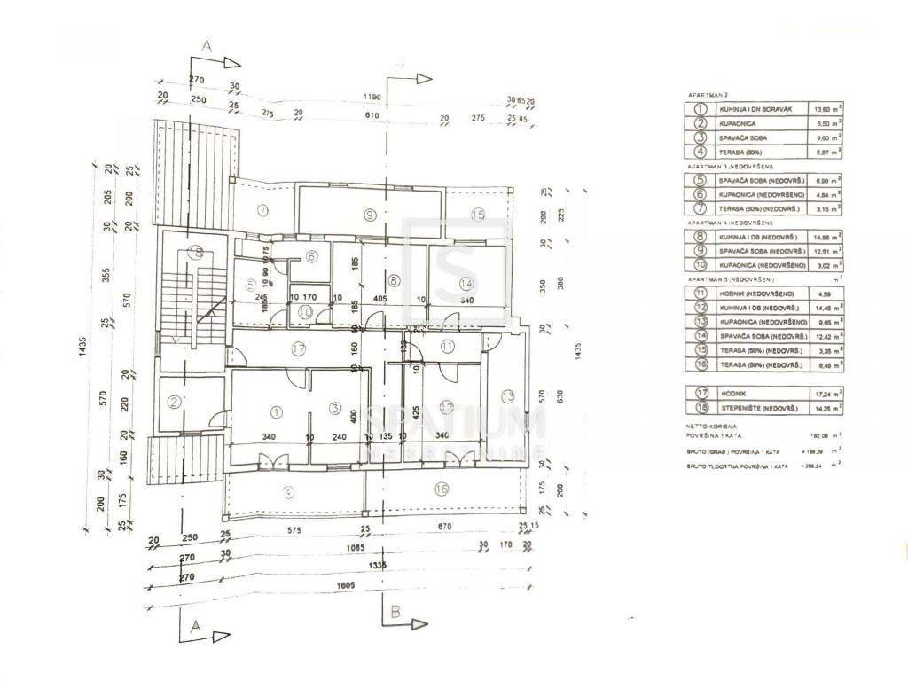 On the first floor, there are four residential units (three in shell condition), collectively around 160 m², while the second floor is being converted into a spacious penthouse with three ensuite bedrooms, an open-plan living room, kitchen, dining area, and a large covered terrace. The planned fixtures include underfloor heating via heat pump, ensuring comfortable year-round living. Both upper floors boast two generous terraces on one side and two balconies on the opposite side, offering abundant natural light and outdoor space.