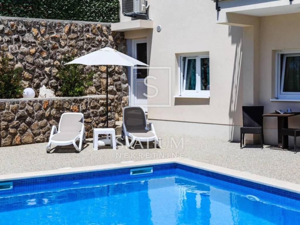 IKA, a beautiful detached villa with a pool, only 5 minutes' walk from the sea. The villa was built in 2019, with 380 m2 of living space and 800 m2 of landscaped garden. It consists of 2 apartments of 110 m2 each, located on the first and second floor. On the ground floor there is a tavern with a fireplace and a furnished room with preparations for a sauna and jacuzzi, as well as a separate smaller apartment of 35 m2. In the fenced yard there is a swimming pool 8x4 meters with preparation for water heating, a landscaped lawn and a children's playground. The villa has an A+ energy certificate, is equipped with video surveillance and an alarm system. There are a total of 7 parking spaces. Ika is a colorful seaside village located on a beautiful coast. It is known for its picturesque atmosphere and rich cultural heritage. It is located in a privileged location, only a few kilometers away from major cities, but at the same time it offers a feeling of peace and tranquility. In the very center of Ike, you can find a variety of facilities that make this location extremely interesting. There are numerous restaurants that offer top local specialties and Mediterranean delicacies. Promenades along the coast enable pleasant walks by the sea and offer spectacular views of the crystal clear Adriatic Sea. The beaches in Ika are known for their natural beauty and crystal clear water. Great opportunity for a tourist rental. For other information, please contact us with confidence. Nives Švast mediation assistant +385 95 859 0550 nives@spatium.hr Spatium nekretnine +385 51 272 903 info@spatium.hr