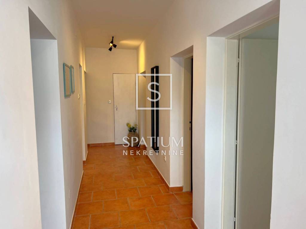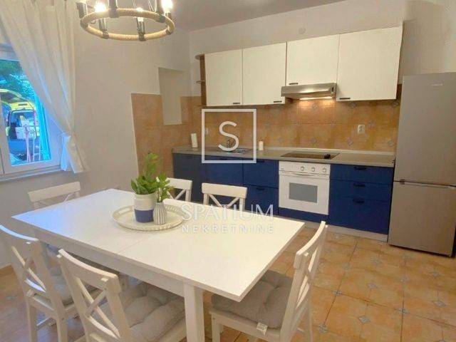 CRIKVENICA, we have received an apartment with a garden of 113.54 m2, less than 200 meters from the sea. It consists of a kitchen with a dining area, bathroom, living room, three bedrooms, hallway, storage room and balcony with an auxiliary building of 17.46 m2. The balcony with a sea view extends along the entire southwest facade, and the living room and two bedrooms have direct access to the balcony. The property is located in a quiet and dead-end street near all essential amenities, which is an advantage and opportunity for engaging in tourism activities as well as for long-term family enjoyment.
