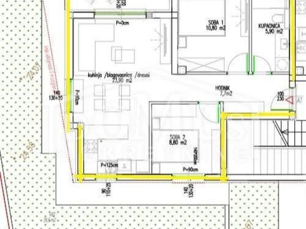 New construction, two-bedroom apartment with a total usable area of 89.30 m² and an adjoining garden of 86.50 m², located on the ground floor of a residential building with a total of 6 residential units. The location combines the charm of a village with proximity to the sea, perfect for those seeking a peaceful and comfortable lifestyle with all necessary amenities. The apartment consists of an entrance hallway, two bedrooms, one bathroom, and a kitchen with a dining area and living room that opens onto a covered terrace of 9.25 m². The apartment is oriented to the northeast and includes one parking space. Premium modern equipment made of high-quality materials: air conditioning in all rooms, underfloor heating in the bathroom, electric roller shutters, and mosquito nets. Occupancy is planned for the beginning of 2027.
