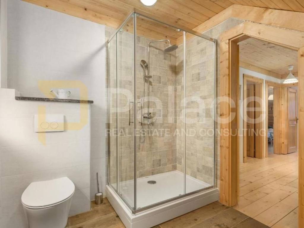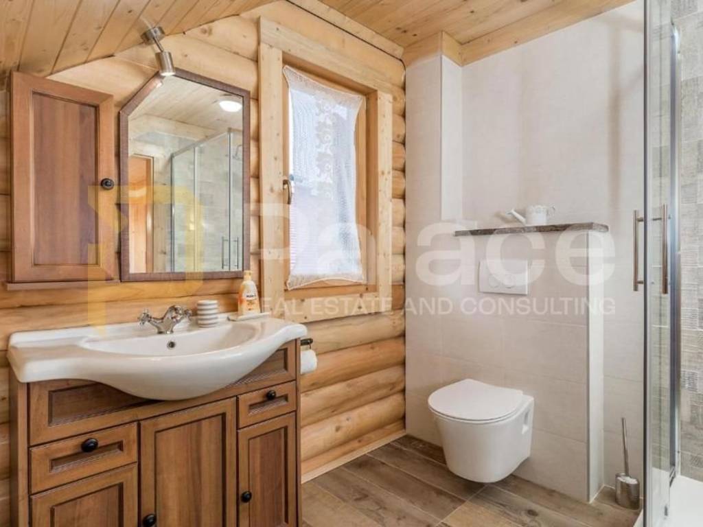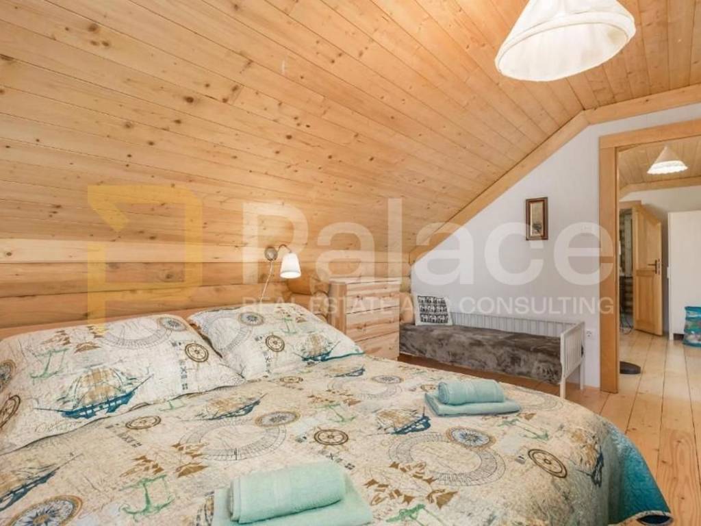 The interior is designed for 8-12 people: four spacious bedrooms, three modern bathrooms, a large living room with a fireplace, dining area, and fully equipped kitchen. There is also a tavern for socializing, a fitness area, and a playroom for children and adults. Every corner radiates warmth of wood and carefully selected details that create an intimate atmosphere.