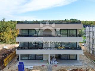 In a peaceful area just 2 km from the sea and the center of Poreč, this exclusive penthouse apartment is located on the top floor of a modern, elegant building of contemporary design.