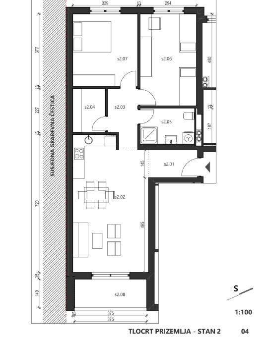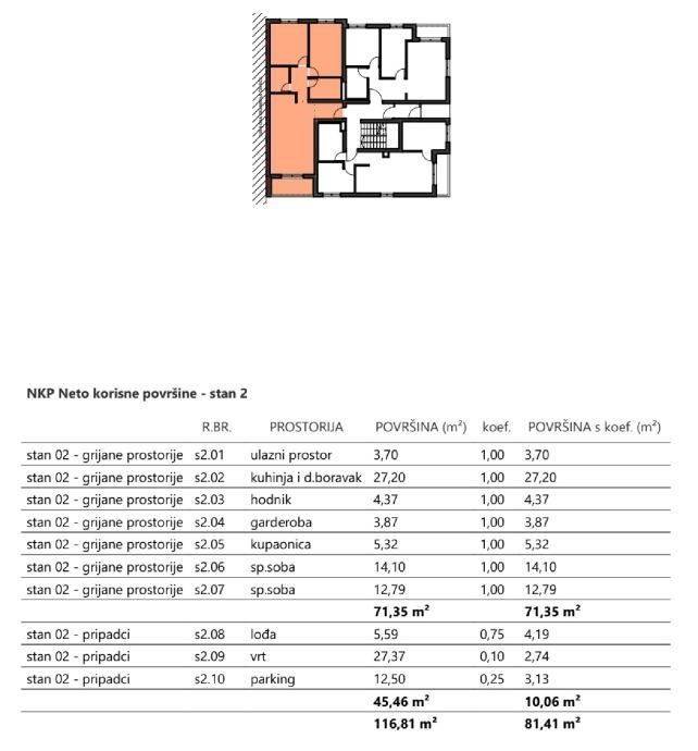 Prodaje se trosoban stan sa vrtom u prizemlju zgrade.