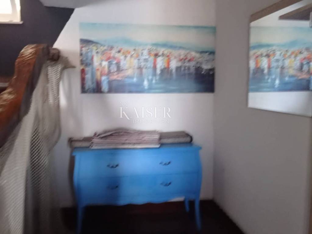 Kaiser Immobilien offers a beautiful villa with a panoramic view of the sea, which consists of two floors, a garden, a swimming pool and a garage. On the first floor there is a living room with a kitchen and dining room, a bedroom, a bathroom and a toilet. Internal stairs lead to the second floor, where there is a bedroom with a bathroom and a toilet, and a spacious terrace with a beautiful panoramic view of the sea. In the garden there is a swimming pool, sunbeds and a space for socializing. The house also has a garage and several parking spaces. The house is beautifully and tastefully furnished and is worthy of attention.