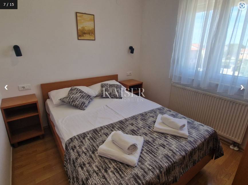 Umag in the northwest of the Istrian peninsula exudes the special charm of a Mediterranean town, in an area where the sea and land offer a wealth of opportunities for adventure, sporting experience and a wealth of tradition. The fertile Istrian soil and delicacies, crystal clear sea, mild Mediterranean climate and proximity to the hilly interior of Istria with cycling and trekking trails - make Umag an ideal destination throughout the year - for active holidays, excursionists and residents. Kaiser Immobilien offers for sale a house with seven apartments and a swimming pool, an additional separate building next to the house for accommodation of workers, all in an attractive location 300m from the sea, 2km from the ATP stadium Stella Maris and 4km from the town of Umag. An ideal location for entrepreneurs who want a property for the tourist industry. The house has seven apartments: - On the ground floor, 2 studio apartments with bathrooms, each 25m2 in size, and an apartment with two bedrooms, a living room and kitchen, a bathroom and a separate toilet, with a total area of 60m2 - On the first floor, there is an apartment with two bedrooms, a living room and kitchen, a bathroom and a separate toilet, with a total area of 60m2, and an apartment with three bedrooms, a living room and kitchen, a bathroom and a separate toilet, with a total area of 75m2 - On the second floor, there is an apartment with three bedrooms, a living room and kitchen, a bathroom and a separate toilet, with a total area of 90m2, and an apartment with three bedrooms, a living room and kitchen, two bathrooms, with a total area of 90m2. - All apartments have terraces or balconies, and from the balcony of the apartment on the third floor there is a beautiful view of the nearby sea - In the basement of the building there is a laundry room, a large practical and functional storage room and a machine room All apartments are furnished and ready for tourist activity: they are air-conditioned and have gas radiator heating. They are equipped with furniture, satellite TVs, kitchens are equipped with a dishwasher, coffee maker, refrigerator and microwave. Spacious bathrooms with showers have hairdryers and other equipment in accordance with the technical conditions for carrying out tourist activities. A separate building in the courtyard next to the house consists of two rooms with bathrooms and a large covered terrace, all with a total area of 93m2 and can be used to accommodate the owner or workers who will manage and work in the house during its operation. In the courtyard of the building there is a practical reception for receiving guests, a beautiful 69m2 swimming pool with a machine room, two outdoor toilets, a smaller covered terrace and a larger covered terrace with an outdoor kitchen - all available to guests for a pleasant vacation and entertainment. Guests have free parking for 6 vehicles, which can be further increased in agreement with the owner. The buyer of this property, built in 2007 and partially renovated in 2023, receives 580m2 of space for tourism activities: - Total living space of the house (apartments): 398m2 - Separate building with 2 bedrooms with bathrooms and a covered terrace: 93m2 - Storage room, laundry and boiler room on the ground floor of the house: 75m2 - Engine room and outdoor toilet by the pool: 14m2 In addition, the buyer also receives: - Swimming pool: 69m2 - Covered terraces in the yard: 55m2 - Land: 580m2 The buyer of this house with apartments and a swimming pool also receives an established business model, a website and a profile transfer on the most famous tourist portal Booking.com. Take advantage of this unique opportunity to purchase a property that, with its size and number of accommodation units (7 apartments), and supporting facilities for business purposes (swimming pool, laundry, storage, reception, accommodation for workers, etc.), provides a unique opportunity for investors in the tourism industry with no or minimal additional investment. Distance: Pula Airport - 80 km Ljubljana - 140 km Munich - 540 km Vienna - 520 km Prague - 850 km The buyer's brokerage fee is 3% + VAT. The fee covers all services related to the purchase and is paid only in the case of purchasing a property, when concluding the first legal transaction. Feel free to contact us for additional information and to arrange a tour of the property: Damir Mlacović e-mail: damir@kaiser-immobilien.hr tel: +385-98-339-933
