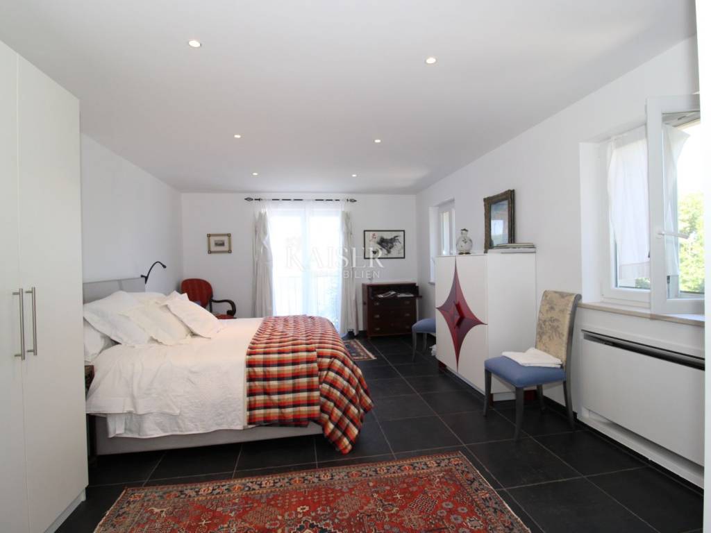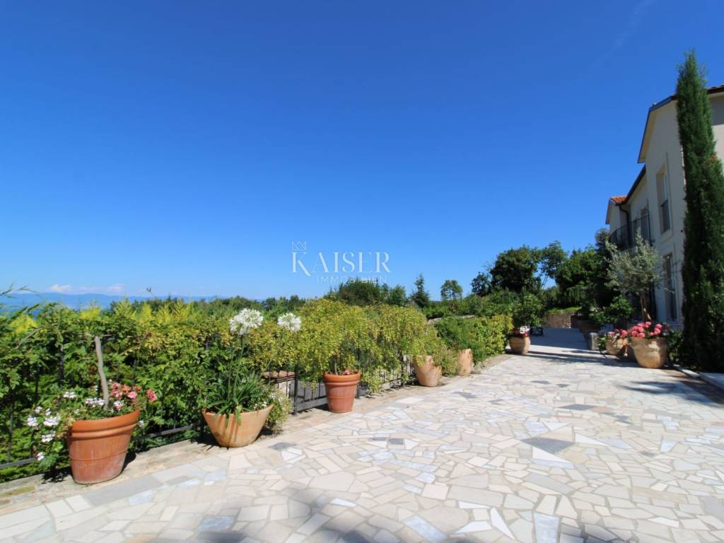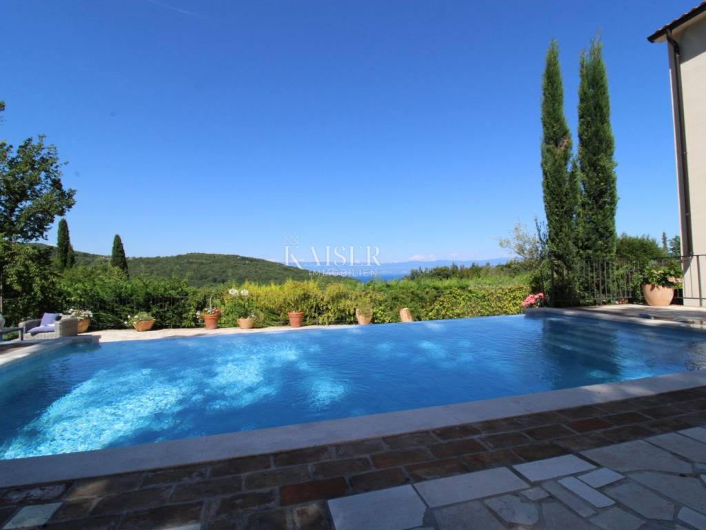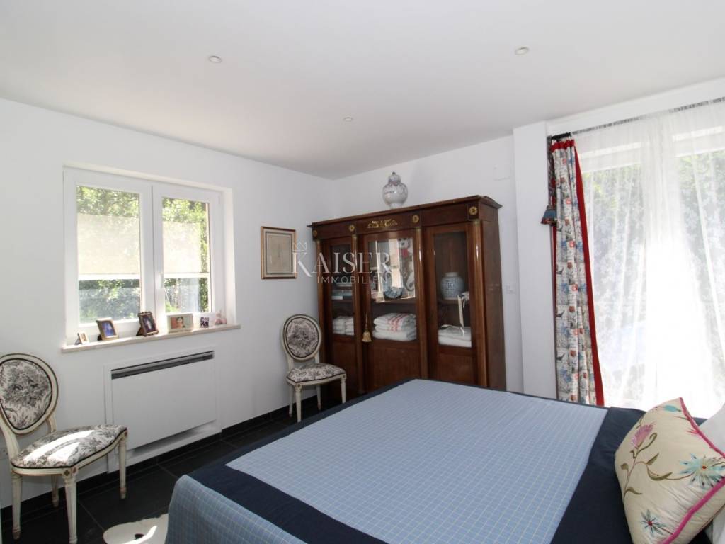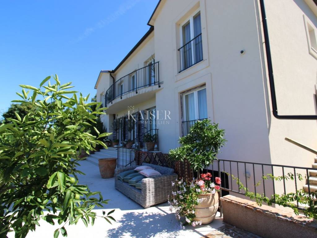 Kaiser - Immobilien presents a luxury house in Brseč, not far from the Opatija Riviera. The house has a total area of 316m2, and is located on a well-kept and landscaped garden of 2778m2. The house consists of two floors. The ground floor consists of a large living room connected to the kitchen and dining room and library, a room with a bathroom, a toilet, and a hallway with a staircase. The first floor consists of four bedrooms with bathrooms, balconies, a terrace and a loggia. The floors are covered with ceramic tiles. Heating and cooling is electric, via a fan coiler. There is underfloor heating in all rooms, and preparations have been made to connect to the pool. The interior is equipped with top quality furniture, every detail is stylish and of high quality. The yard is fully landscaped, with an infinity pool for which there is preparation for heating, and terraces with garden furniture. The horticultural arrangement is extremely interesting and rich, and on one of the plateaus there is the possibility of building a gazebo or a smaller auxiliary building. The property is located just two minutes' drive from the beach. The diverse wild coastline of this region, the natural features of Brseč, the town museum of Mošćenica, the beautiful Mošćenička Draga and various other features of this location make the stay extremely interesting. The property is also extremely interesting for commercial use. The ferry port of Brestova is located 3 km away, so the connection with Cres and Lošinj is extremely good. Mošćenice, shop, restaurant: 3.5 km / 10 minutes Mošćenička Draga, beach: 6.5 km / 15 minutes Opatija: 20 km / 30 minutes Rijeka: 30 km / 45 minutes Rijeka Airport: 60 km / 70 minutes Airport Pula: 70 km / 80 minutes Ljubljana: 130 km / 2 hours Vienna, Munich, Budapest: 500 km / 6 hours Agency commission for the buyer is 3% + VAT. The commission covers all services related to the purchase and is paid only in the case of real estate purchase, when the first legal deed is concluded.