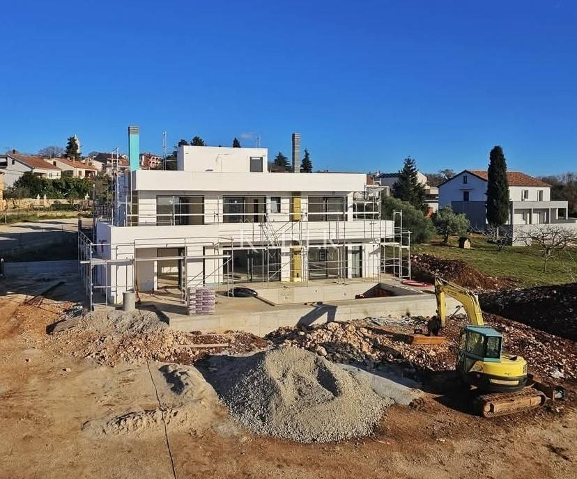 Kaiser Immobilien proudly presents a real beauty among villas., a modern and elegant villa with a swimming pool and sauna and with a beautiful view of the sea and the Austrian Alps. The villa is located in an ideal location only 10 km from the city of Poreč and the first beaches, and close to all the necessary amenities for life., market, school, kindergarten, restaurant that you will easily visit on foot without starting the car. This imposing villa stands gracefully as a detached building on a plot of 979 m2 and is surrounded by a quiet village, beautiful views and green areas. The area of the villa's inner net part is 240 m2, if we add the terraces we arrive at an area of 433 m2. The villa enchants with its perfect balance between contemporary design and modern elements. The exterior and interior of the villa are connected by a very modern design with a spacious and beautifully landscaped lawn with Mediterranean plants and a pleasant heated pool of 40 m2. The villa is a combination of modern design in a natural environment. The villa consists of a ground floor and a first floor, and the special feature of this villa is its spacious roof terrace, measuring 97 m2, which offers a breathtaking view of the sea, the Alps and the village around the villa. The ground floor of the villa is decorated with 1 bedroom with 1 bathroom and its own walk-in wardrobe, kitchen, living room, dining room, 1 guest toilet, storage room and a machine room that has an entrance from the outside and where everything is regulated for Daikin heat pumps, pool heating and underfloor heating. On the first floor of the villa there are 3 more bedrooms with 3 bathrooms, each room has an exit to a balcony, and one bedroom has another additional balcony for itself. Access to the terrace and to the floor inside the villa is provided by internal stairs, which lead to a spacious and beautiful roof terrace with a jacuzzi and sauna, with an irresistible view. The roof terrace provides the possibility of setting up other facilities to make your stay there unforgettable and even more enjoyable. The villa's courtyard will be landscaped with Mediterranean plants, and the entire yard is equipped with irrigation. There is a 40 m2 heated pool, a spacious sunbathing area around the pool and a summer kitchen. additional features: - 4 covered parking spaces, - anthracite black, PVC and aluminum joinery with electric lifts, - electric shutters - heated pool with counter-current swimming - jacuzzi and sauna - insulation - scale-free water softener - water heating - heat pumps Distance from the property to the town: Poreč - Pula Airport, 45 km Poreč - Ljubljana, 162 km Poreč - Vienna, 544 km Poreč - Prague, 868 km Poreč - Munich, 565 km If you are looking for your perfect villa, please contact us with confidence at the phone number 00385 923782803, or at the email address: ivana@kaiser-immobilien.hr. The agency commission is 3% + VAT, and is charged for the first legal act. The villa is subject to VAT and no additional tax is payable on it.