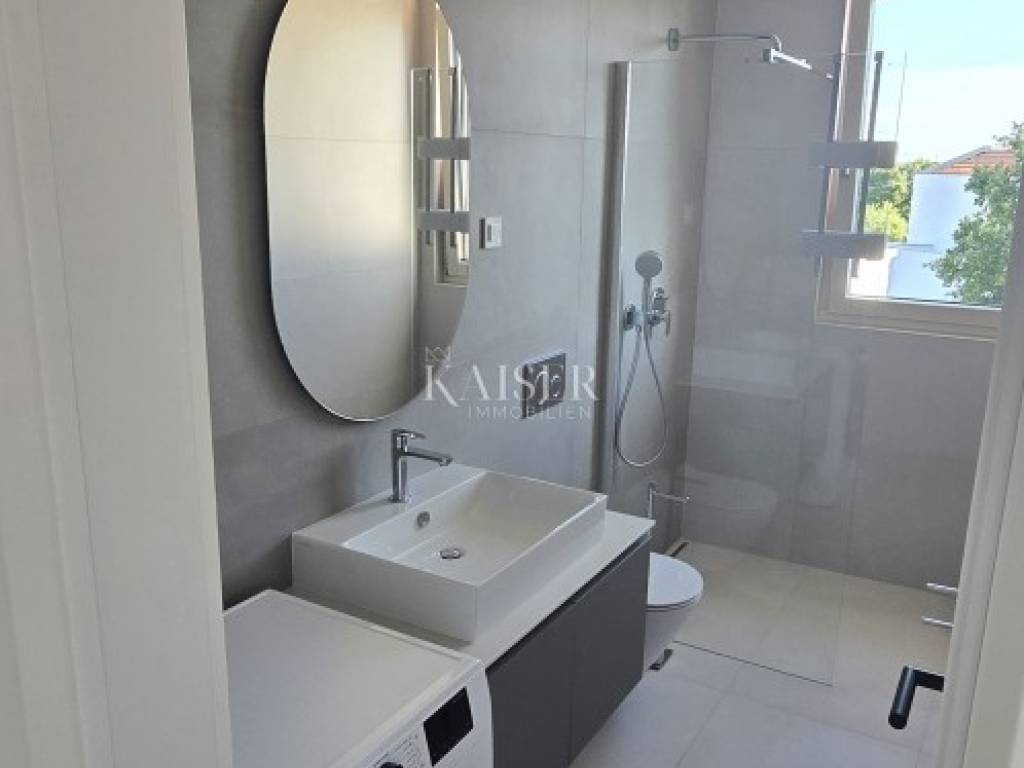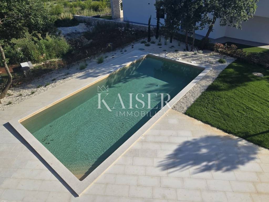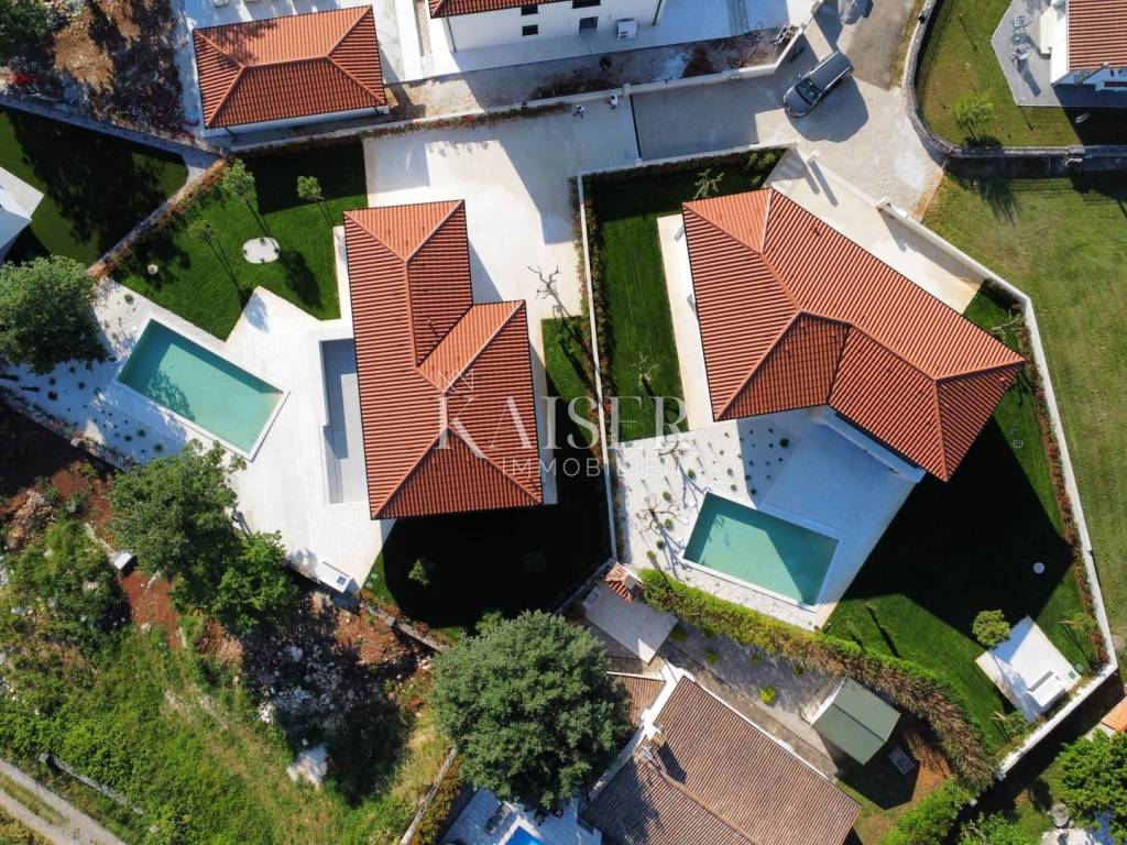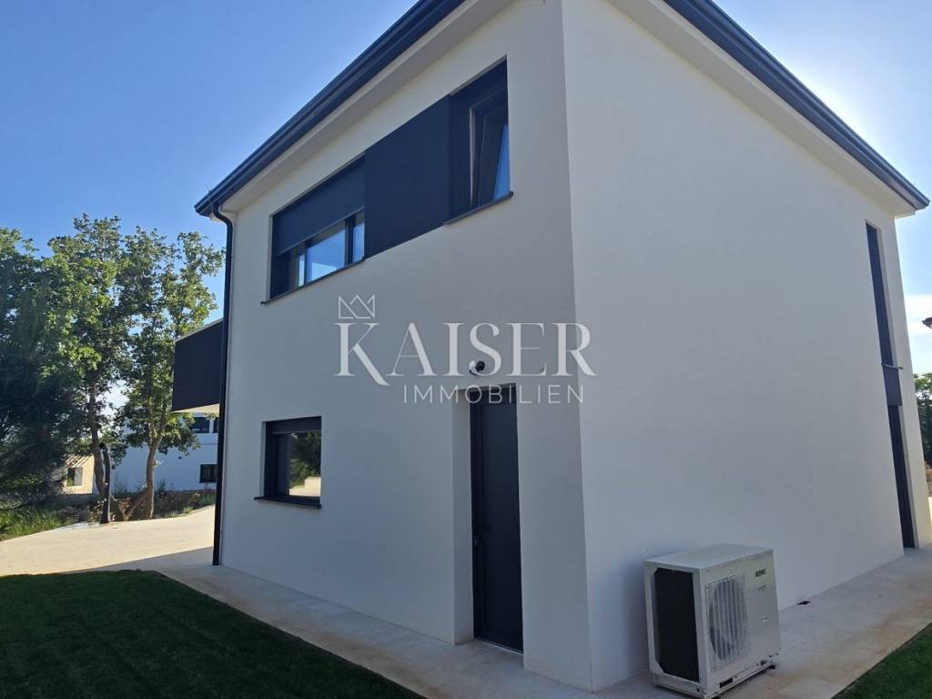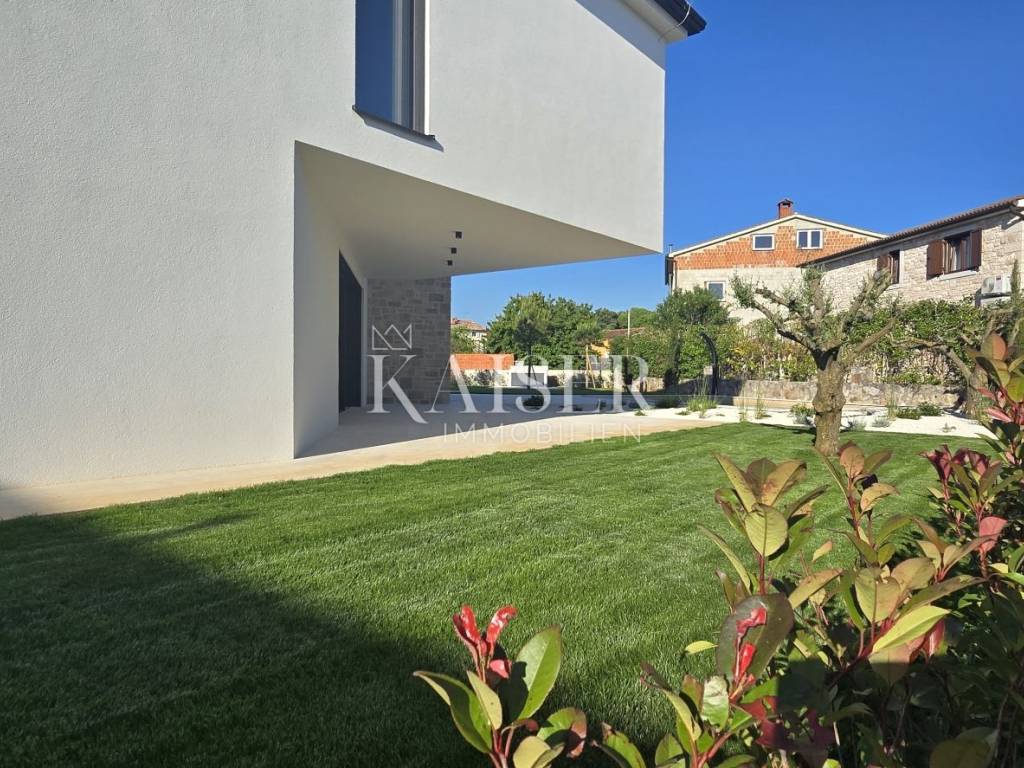 Kaiser Immobilien presents a new modern villa near Poreč. The villa is located in a new settlement of three similar villas, only 11 km from the city of Poreč and the first beaches. Its location is a very peaceful autochthonous environment that guarantees you relaxation and relaxation with the local population that lives there. Only 2 km away is a small autochthonous Istrian town with all the necessary facilities such as a shop, restaurant, pizzeria, school, hairdressers, coffee bar and more. The villa is located on a plot of 751 m2 with a swimming pool, sauna and private yard. The villa consists of a ground floor and a first floor. On the ground floor of the villa there is one bedroom, bathroom, living room, kitchen and dining room and storage room. The entire lower part of the villa is built in the open space style, which gives you an open view of the entire space with lots of sunlight. The lower part leads to the pool and covered terrace, and to the yard with a summer kitchen. On the first floor of the villa, there are two more spacious bedrooms, one of which has its own bathroom and exit to the terrace with a view of nature and the pool. The second room has a separate bathroom. The attraction of this villa is certainly the sauna located on the first floor, with an entrance hall leading directly to the terrace. Heating and cooling is provided by underfloor heating with a heat pump and valve convectors. Additional features: - All windows and doors are made of wood/aluminum manufactured by M-SORA - All rooms have underfloor heating (heat pump) - Cooling with built-in fan coils (convectors) - Each villa has a swimming pool with modern foil RENOLIT ALKORPLAN TOUCH in Relax color, which makes the color of the water natural - Facades: a combination of stone facades and facades from the manufacturer STO ("Mercedes" in facades) - All internal doors from floor to ceiling, meaning height approx. 270 cm - Floors: Italian ceramics of larger dimensions and oak parquet in the bedrooms. - Swimming pool - possibility of installing a heat pump - Video intercom - Possibility of video surveillance (all installation done) - Possibility of alarm system (all installation done) Distance of the property to the place: Poreč - Pula Airport, 45 km Poreč - Ljubljana, 162 km Poreč - Vienna, 544 km Poreč - Prague, 868 km Poreč - Munich, 565 km The property is in the VAT system, so the buyer is not obliged to pay real estate transfer tax. If you want this modern and quality built villa to become your new home, contact the agent at phone number 00385 923782803, or email address: ivana@kaiser-immobilien.hr Agency commission is 3% + VAT.