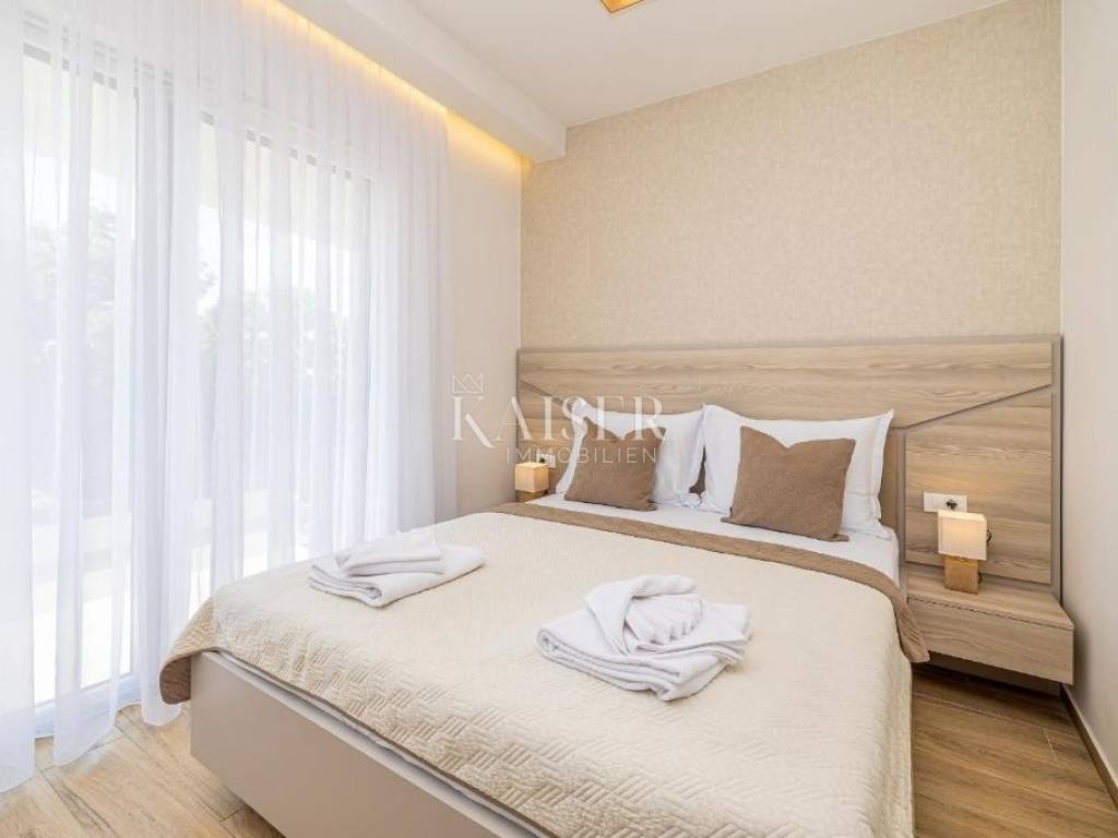 aiser immobilien mediates the sale of a beautiful semi-detached building located in Omišlja, the first inhabited place after moving from the mainland to the northwestern part of the island of Krk. The concept of this modern semi-detached villa is spread over two floors with a total area of 204 m2. On the ground floor there is a spacious living area consisting of a living room, kitchen and dining room, as well as a toilet, a social area and a laundry room. There are four bedrooms and four bathrooms on the first floor. Three rooms have access to spacious covered balconies from which the view extends to the soothing greenery of the nearby forest, given that the building is located on the border with the green belt, and at the same time 500 m from the sea. From the living room you can access a spacious terrace with a garden where there is a swimming pool with a sunbathing area. The building also has three parking spaces. Top quality materials are used in the construction, underfloor heating is implemented via a heat pump, and all rooms are air-conditioned. Completion of the construction is scheduled for the end of 2023. Omišalj is located on an 85-meter high cliff, which gives it a special charm, and it is, along with the city of Krk, the oldest living settlement on the island. Although Omišalj is mentioned in XII. century as "Castri musculi" (from Latin "Ad musculi" - place of shells) the place has prehistoric foundations. Its development can be traced from the Liburnian and Roman times, through the Frankopan princes of Krk to the present day. In the area of the old city center there was a prehistoric castle (castellier), and in the immediate vicinity there is also the ancient site of Fulfinum, in the nature of a basilica whose basic shape is a Latin cross. It has been preserved up to the height of the roof and is the only preserved sacral object of its type not only on the island of Krk, but also on the entire Croatian coast, and according to some sources, the largest in the Mediterranean.
