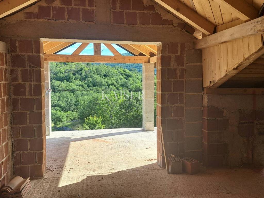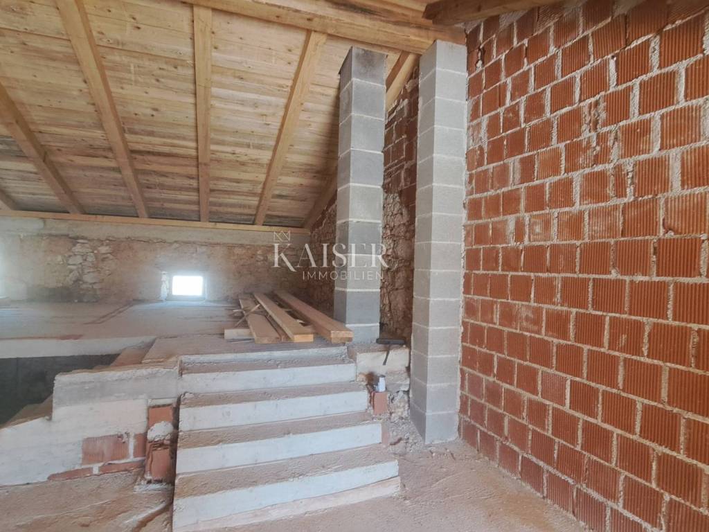 Brseč is a medieval town located on a coastal cliff. It is located on the slopes of Učka, which is the most famous and most visited mountain in Kvarner. Kaoser Immobilien presents you a charming old house built of old stone. The house is located in a very quiet location where you will wake up to the sound of birdsong. The house has a partial view of the island of Cres on one side and Sisol on the other. The house has a floor plan area of 98m2. It consists of a ground floor, a first floor and a high attic. Each floor has 98 m2, the house has a total of 294 m2. There are two spacious taverns on the ground floor of the house. On the first floor of the house, at the entrance, there is a room for a bathroom, a kitchen with a dining room, a living room and one room with its own bathroom. It has an exit to a beautiful terrace where there is a barn from 1899. On the second floor there is a high attic intended for two bedrooms, each with its own bathroom. There is also a small room for relaxation, and the basement has access to a beautiful terrace with a view of Cres and the slopes of Sisola. Along with the house, the sale price includes a piece of land of 162 m2, which is located in the immediate vicinity of the house and is 40 meters from the house. That part of the land can be used as an additional parking lot.