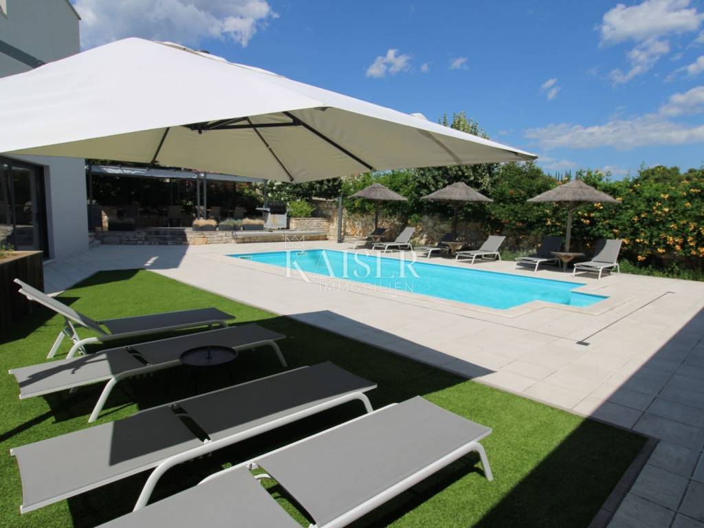 Kaiser Immobilien offers for sale, a unique opportunity., a beautiful B&B villa with a sea view and its own swimming pool. The villa is located about 10 minutes away from the city of Poreč, in a small village with all the necessary amenities nearby., shop, restaurant, school, kindergarten, beautician, hairdresser.. This beautiful property was designed as B&B accommodation and as such records a significant profit every year with already constant regular guests and visitors. In its content, the villa offers 5 bedrooms with their 5 bathrooms, a spacious kitchen for preparing breakfast, a comfortable living room for socializing and relaxing, a shared pool for all visitors, a sunbathing area around the pool, an outdoor kitchen with barbecue and grill, an outdoor area for socializing, a garage, several parking spaces, an indoor fireplace and a space for socializing, a special room for maintenance and cleaning and more. All bedrooms offer access to a balcony or courtyard, have lots of light and are each designed and equipped in a special way with a special theme and colors. It is very important for me to note that in this property the current owners themselves designed and decorated the space with their own special design ideas, love for space, place and nature. The furniture used to furnish the villa is Belgian designer furniture from the Pure - Dauby brand. The entire layout and appearance was transferred from the owner's imagination to this property. The villa was purchased as an old Istrian house, built before 1968, and in 2019 its renovation and reconstruction began with the will and desire and above all unique ideas of the current owners and was transformed into this unique, beautiful, special and most importantly profitable property. The villa consists of two buildings in a shared courtyard. The first building is larger, there are 4 bedrooms with their own bathrooms, one on the ground floor and three on the first floor. The second building was built as a separate apartment with one bedroom and bathroom, kitchen, fireplace and living area for socializing. The first floor of the villa offers a beautiful view of the sea and the village. There are solar panels on the roof for heating water. The garage is 40 m2 in size and can be converted into an additional apartment if necessary. The ownership is in order and the property has all the necessary permits. Distance from the property to the town: Poreč - Pula Airport, 45 km Poreč - Ljubljana, 162 km Poreč - Vienna, 544 km Poreč - Prague, 868 km Poreč - Munich, 565 km If you are looking for B&B accommodation or simply want a larger, more spacious villa, please contact us with confidence at: phone: 00385923782803 email address: ivana@kaiser-immobilien.hr. Seller: Ivana Gašparini. The agency fee is 3% + VAT, and is charged with the first legal act.