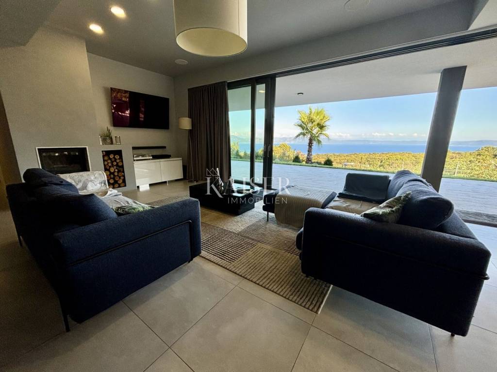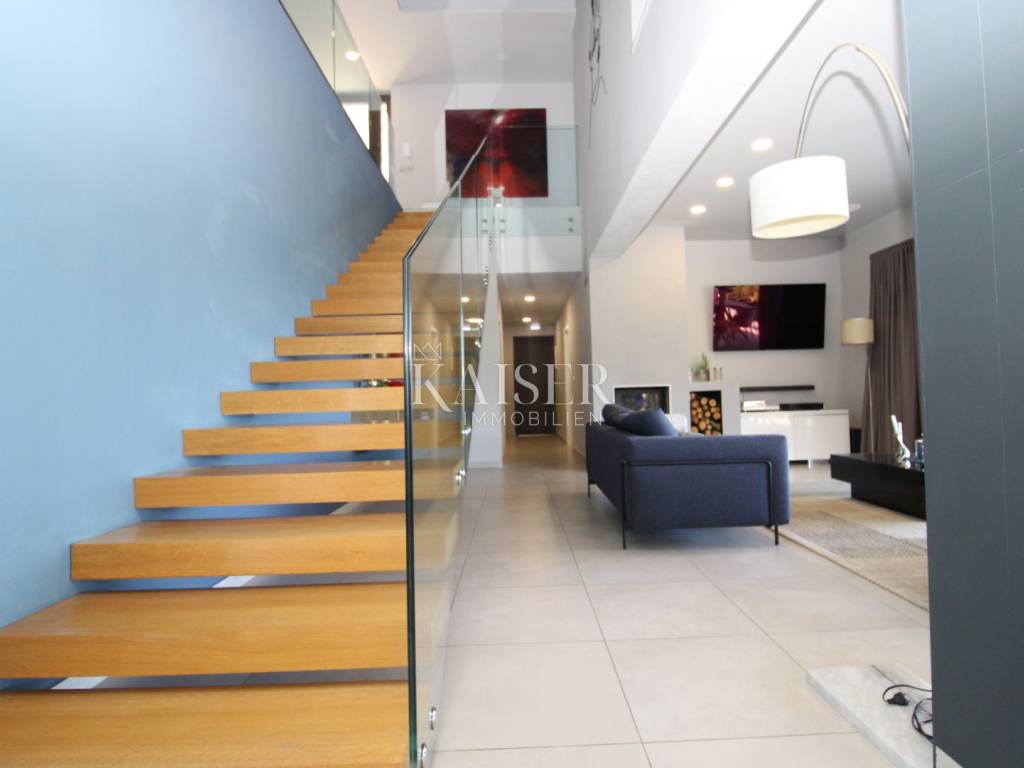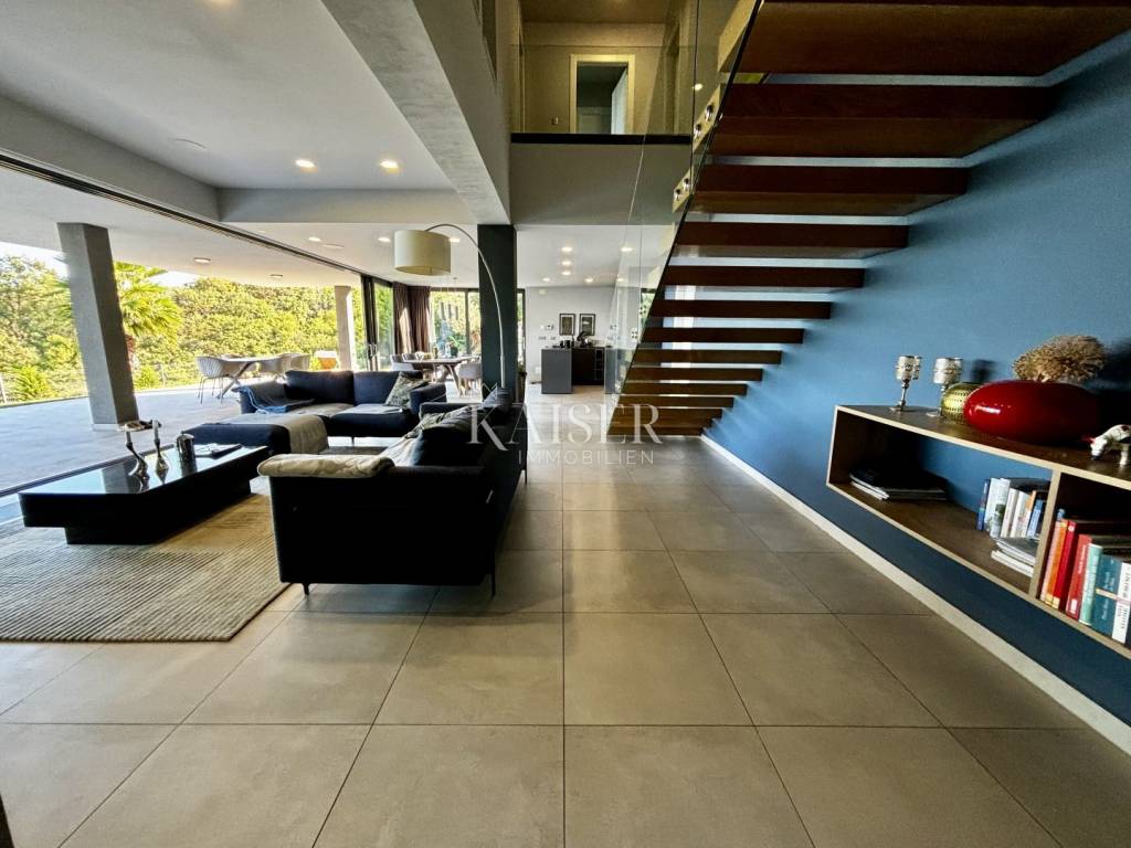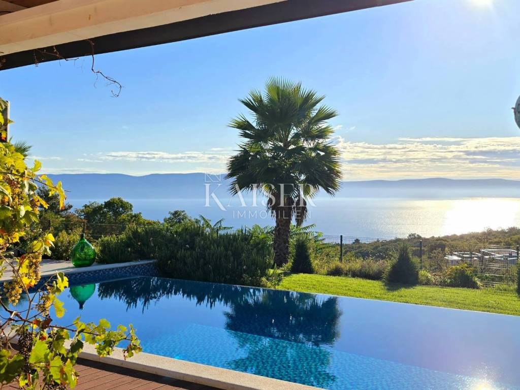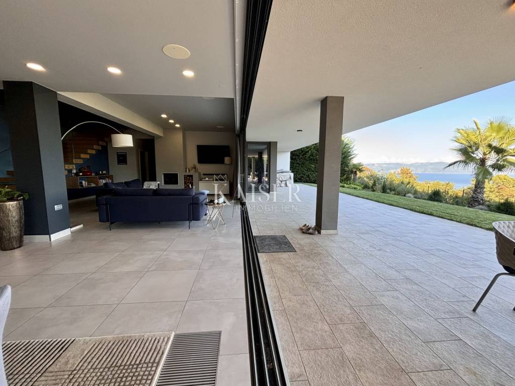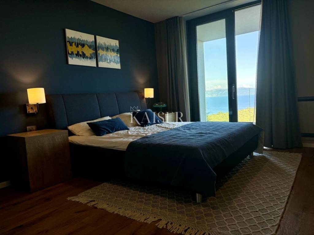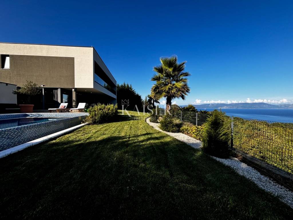 Kaiser Immobilien presents a unique villa with the sea in the palm of your hand. The villa is a modern luxury oasis with panoramic views and impeccable design. This luxurious new building is located in an exceptional location in a quiet and green area, just one kilometer from the sea. The villa is located in the vicinity of Rabac, a famous tourist destination with one of the most beautiful beaches in Istria and Kvarner. It is located on the Skitača peninsula, a luxurious location with numerous hidden coves and crystal clear sea. With a total of 210 m² of living space, the house offers a superb combination of modern design, functionality and comfort, while providing incredible privacy and a sense of relaxation throughout the year. The space consists of five spacious bedrooms, four elegant bathrooms and an additional toilet, while the abundance of glass surfaces ensures maximum light and an open view of the sea and nature. The house also has a gym, providing additional comfort and the possibility of an active lifestyle without having to leave your own home. On the ground floor there is a spacious, open kitchen with a dining room and a living room that are harmoniously connected into one whole. The living area opens onto a covered terrace that invites you to relax in the sun and fresh air. The ground floor also offers an additional bedroom (gym), ideal for guests or as a work space, and a separate toilet, ensuring complete practicality of everyday life. On the first floor there are four spacious bedrooms, each with its own modern bathroom and access to a terrace overlooking the sea and nature. The floor is further enhanced by an elegant gallery and a modern internal staircase that visually connects the floors, giving the space airiness and architectural dynamics. The entire interior is abundant in natural light thanks to large glass walls that open up views of the surrounding greenery and the sea. The interior is carefully designed in a contemporary style with warm, neutral tones and soothing shades of blue that are reminiscent of the Mediterranean environment. High-quality materials were used, and every detail was thought out to create a feeling of lightness and sophisticated luxury. The 1,150 m² plot is fully landscaped and well-kept, with a beautiful garden that highlights the richness of Mediterranean herbs such as lavender, rosemary and olive trees. In the central part there is an elegant swimming pool surrounded by a sunbathing area, perfect for enjoying during warm days, while a covered terrace with a barbecue and dining area provides an ideal place for relaxing and socializing outdoors. A large private parking lot with enough space for several cars further contributes to the practicality and comfort of everyday living. This property represents the perfect blend of modern architecture, luxurious amenities and untouched nature. Located in a peaceful environment, yet close to all important amenities and the city, it is ideal as a family home, a holiday home or as an investment with high tourist potential. Every detail of the space has been designed to provide an experience of relaxed but sophisticated life in harmony with the Mediterranean ambience. It is only 12 kilometers from the nearest larger town, Labin, while the famous tourist center of Rabac and its beautiful beach are a 15-minute drive away. The city of Pula, with its international airport and rich cultural and historical heritage, is 45 kilometers away, while Opatija and Rijeka are within an hour and a half drive. Slovenia and border crossings are about an hour away, and Trieste and Italy are also easily accessible for day trips. For more information, contact the agent. Ana Beović +385 91 618 3332 ana@kaiser-immobilien.hr