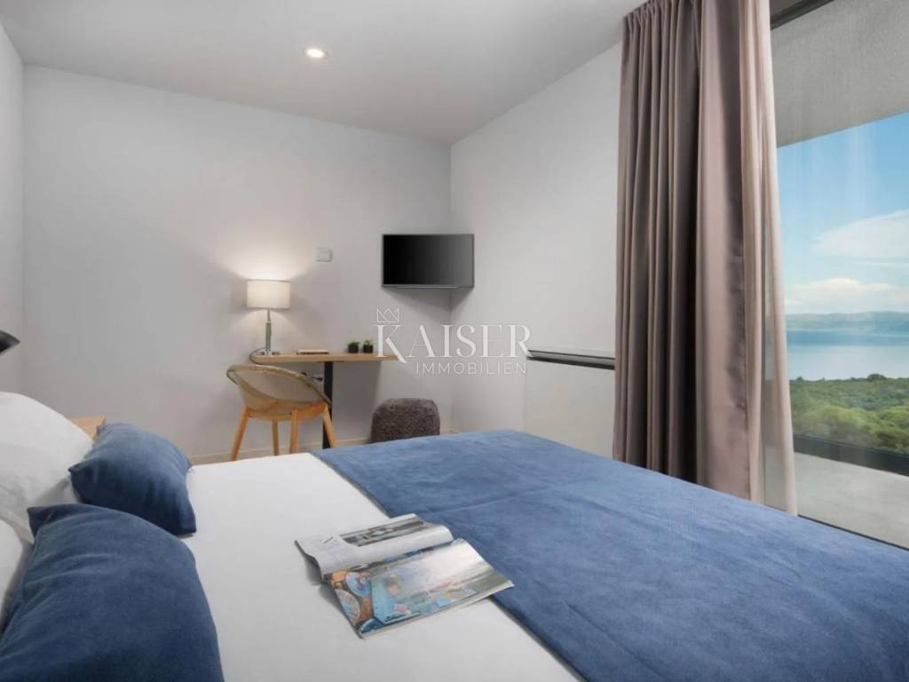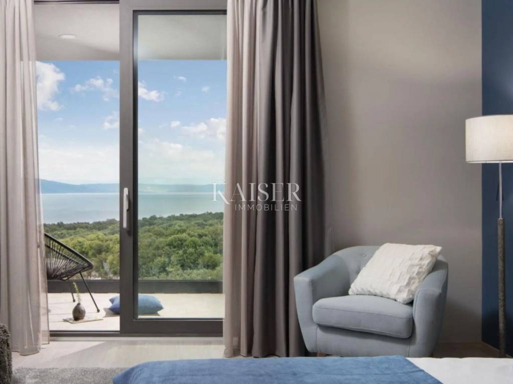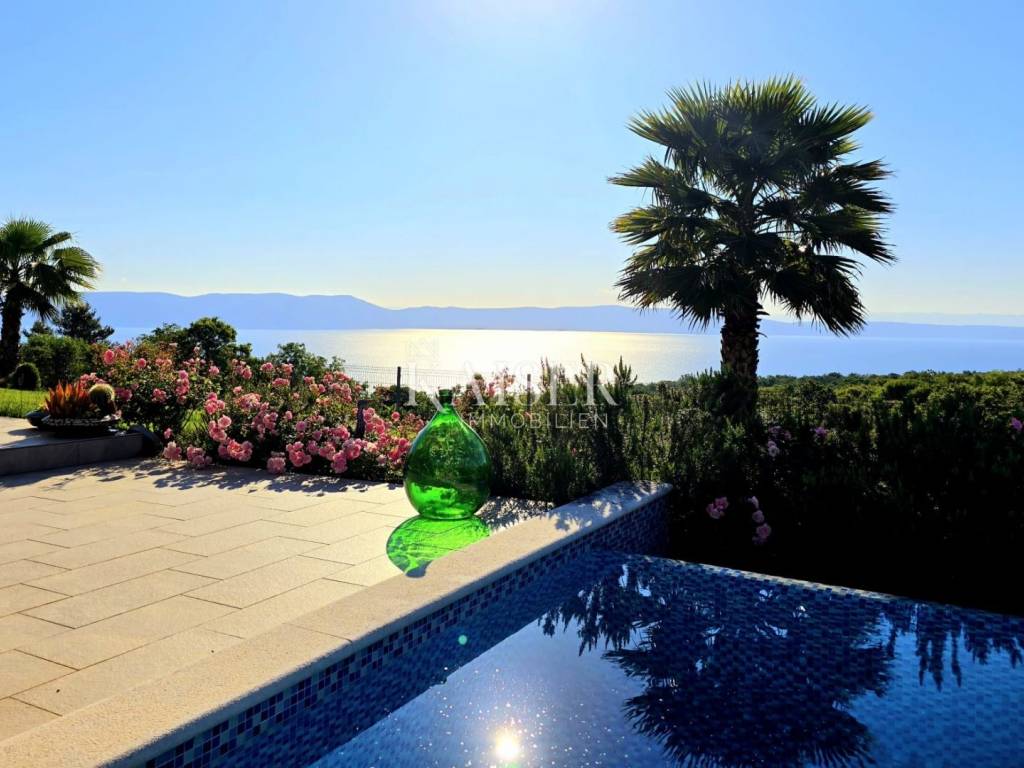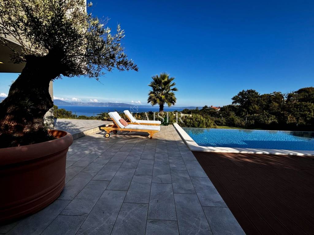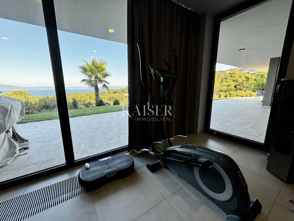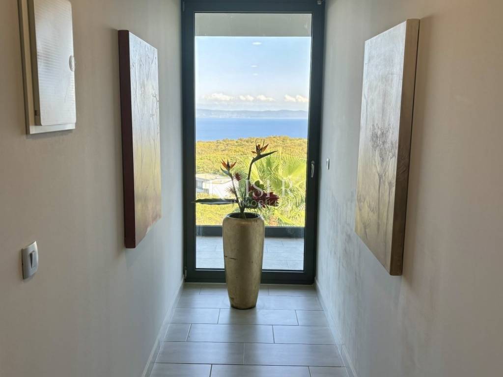 Kaiser Immobilien presents a unique villa with the sea in the palm of your hand. The villa is a modern luxury oasis with panoramic views and impeccable design. This luxurious new building is located in an exceptional location in a quiet and green area, just one kilometer from the sea. The villa is located in the vicinity of Rabac, a famous tourist destination with one of the most beautiful beaches in Istria and Kvarner. It is located on the Skitača peninsula, a luxurious location with numerous hidden coves and crystal clear sea. With a total of 210 m² of living space, the house offers a superb combination of modern design, functionality and comfort, while providing incredible privacy and a sense of relaxation throughout the year. The space consists of five spacious bedrooms, four elegant bathrooms and an additional toilet, while the abundance of glass surfaces ensures maximum light and an open view of the sea and nature. The house also has a gym, providing additional comfort and the possibility of an active lifestyle without having to leave your own home. On the ground floor there is a spacious, open kitchen with a dining room and a living room that are harmoniously connected into one whole. The living area opens onto a covered terrace that invites you to relax in the sun and fresh air. The ground floor also offers an additional bedroom (gym), ideal for guests or as a work space, and a separate toilet, ensuring complete practicality of everyday life. On the first floor there are four spacious bedrooms, each with its own modern bathroom and access to a terrace overlooking the sea and nature. The floor is further enhanced by an elegant gallery and a modern internal staircase that visually connects the floors, giving the space airiness and architectural dynamics. The entire interior is abundant in natural light thanks to large glass walls that open up views of the surrounding greenery and the sea. The interior is carefully designed in a contemporary style with warm, neutral tones and soothing shades of blue that are reminiscent of the Mediterranean environment. High-quality materials were used, and every detail was thought out to create a feeling of lightness and sophisticated luxury. The 1,150 m² plot is fully landscaped and well-kept, with a beautiful garden that highlights the richness of Mediterranean herbs such as lavender, rosemary and olive trees. In the central part there is an elegant swimming pool surrounded by a sunbathing area, perfect for enjoying during warm days, while a covered terrace with a barbecue and dining area provides an ideal place for relaxing and socializing outdoors. A large private parking lot with enough space for several cars further contributes to the practicality and comfort of everyday living. This property represents the perfect blend of modern architecture, luxurious amenities and untouched nature. Located in a peaceful environment, yet close to all important amenities and the city, it is ideal as a family home, a holiday home or as an investment with high tourist potential. Every detail of the space has been designed to provide an experience of relaxed but sophisticated life in harmony with the Mediterranean ambience. It is only 12 kilometers from the nearest larger town, Labin, while the famous tourist center of Rabac and its beautiful beach are a 15-minute drive away. The city of Pula, with its international airport and rich cultural and historical heritage, is 45 kilometers away, while Opatija and Rijeka are within an hour and a half drive. Slovenia and border crossings are about an hour away, and Trieste and Italy are also easily accessible for day trips. For more information, contact the agent. Ana Beović +385 91 618 3332 ana@kaiser-immobilien.hr