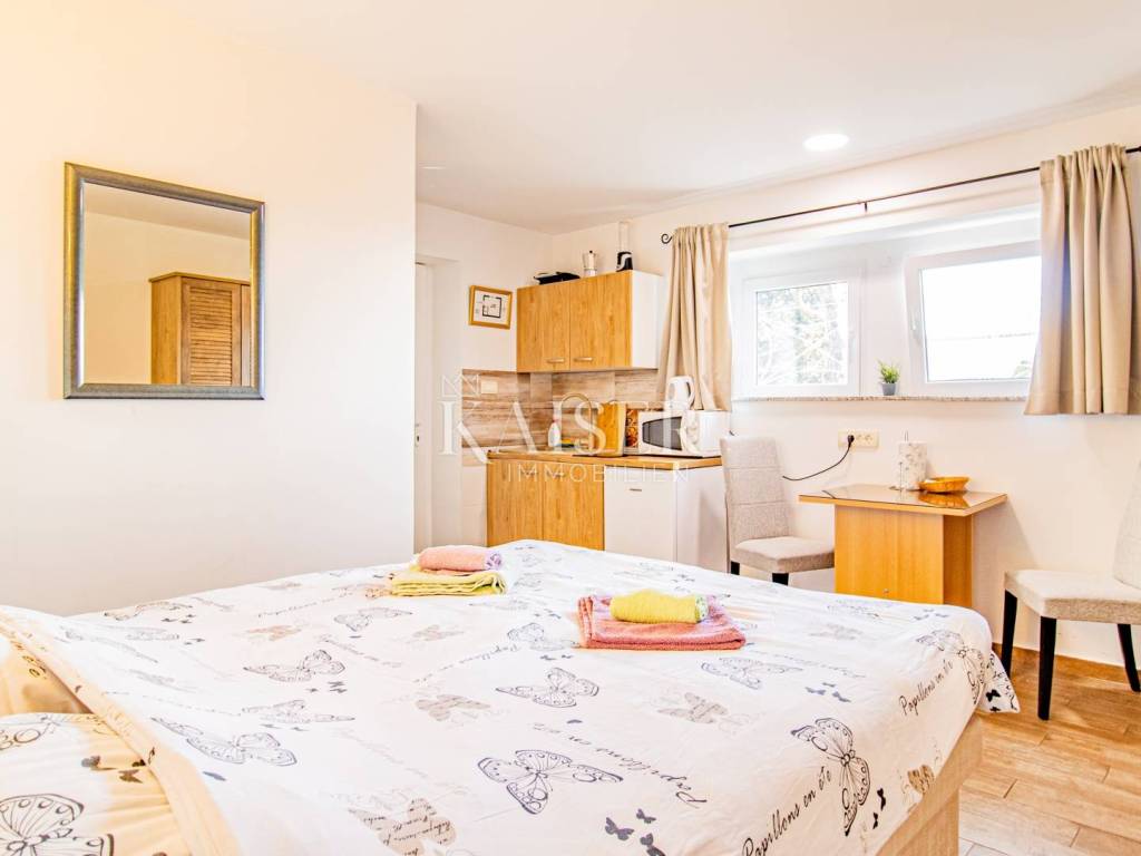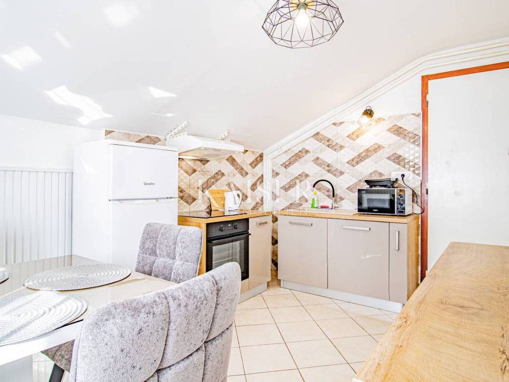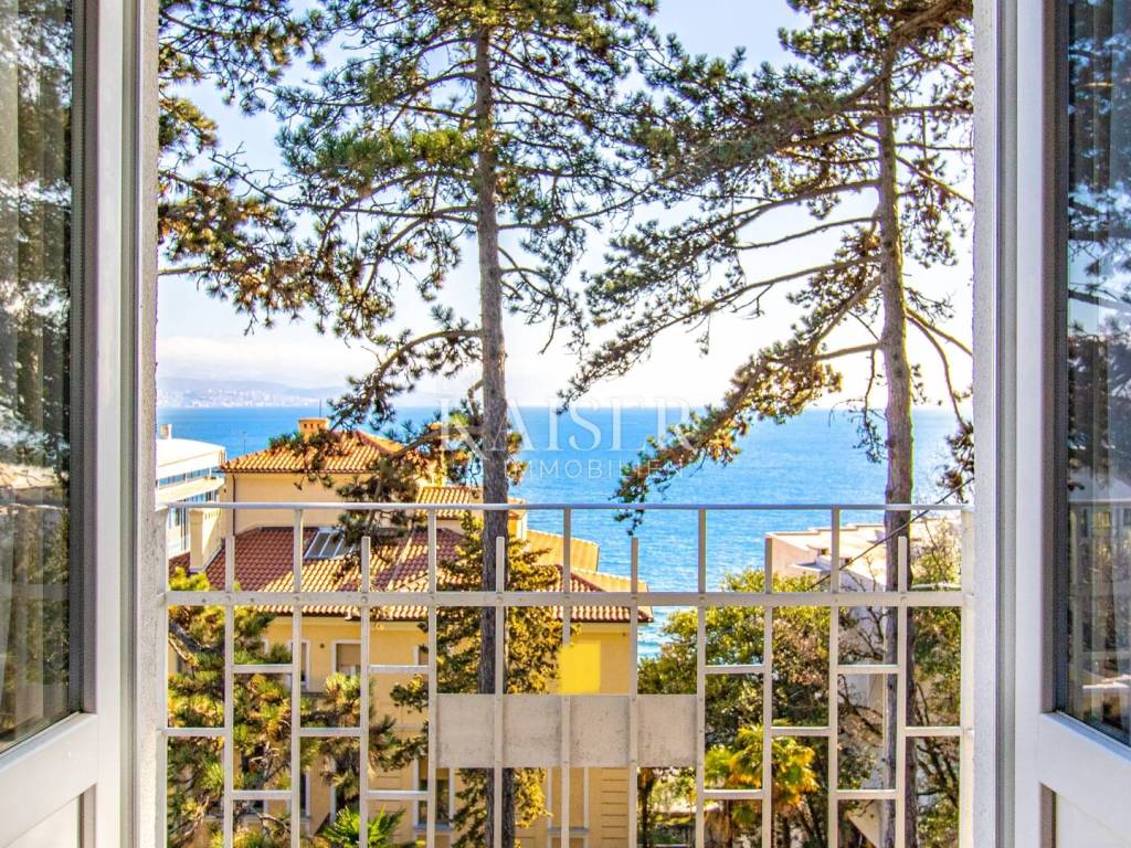 A beautiful apartment for sale in a villa in Opatija, located on the 2nd floor, with a total area of 122.70 m2. Essentially, this represents half of the villa in an attractive location and half of the use of the beautiful garden. The offer includes one floor of the villa and 1 apartment. The apartment consists of a hallway, kitchen, living room, three bedrooms and a bathroom, as well as two balconies that offer a beautiful sea view. Both balconies allow you to relax and enjoy the view, and the space is bright and airy. The apartment also comes with a 17.97 m2 storage room in the basement, which has been converted into a fully functional studio apartment, ideal for guests or additional rental income. The total area of the apartment together with the storage room/studio apartment is 140 m2. It was renovated in 2022, including modernization of installations, oil-fired central heating and installation of PVC joinery, which ensures energy efficiency and comfort throughout the year. In addition to central heating, the apartment is equipped with air conditioning, providing additional comfort. The yard, with an area of 1,600 m2, is shared by all tenants and is formed as a park with horticulturally arranged greenery, ideal for relaxing in nature. The apartment also has its own garage of 15 m2 and another 1 outdoor parking space, which is a big advantage in this location. It is located in a quiet part of Opatija, yet in close proximity to all important facilities and the sea! The location is far from major cities: Vienna 4 h 30 min, Berlin 10 h, Zagreb 1 h 40 min, Pula airport 2 h, Trieste 1 h, Ljubljana 2 h, driving by car. For all information and viewing call +385916133776 agent Eli Lovko Agency commission is 3%+VAT