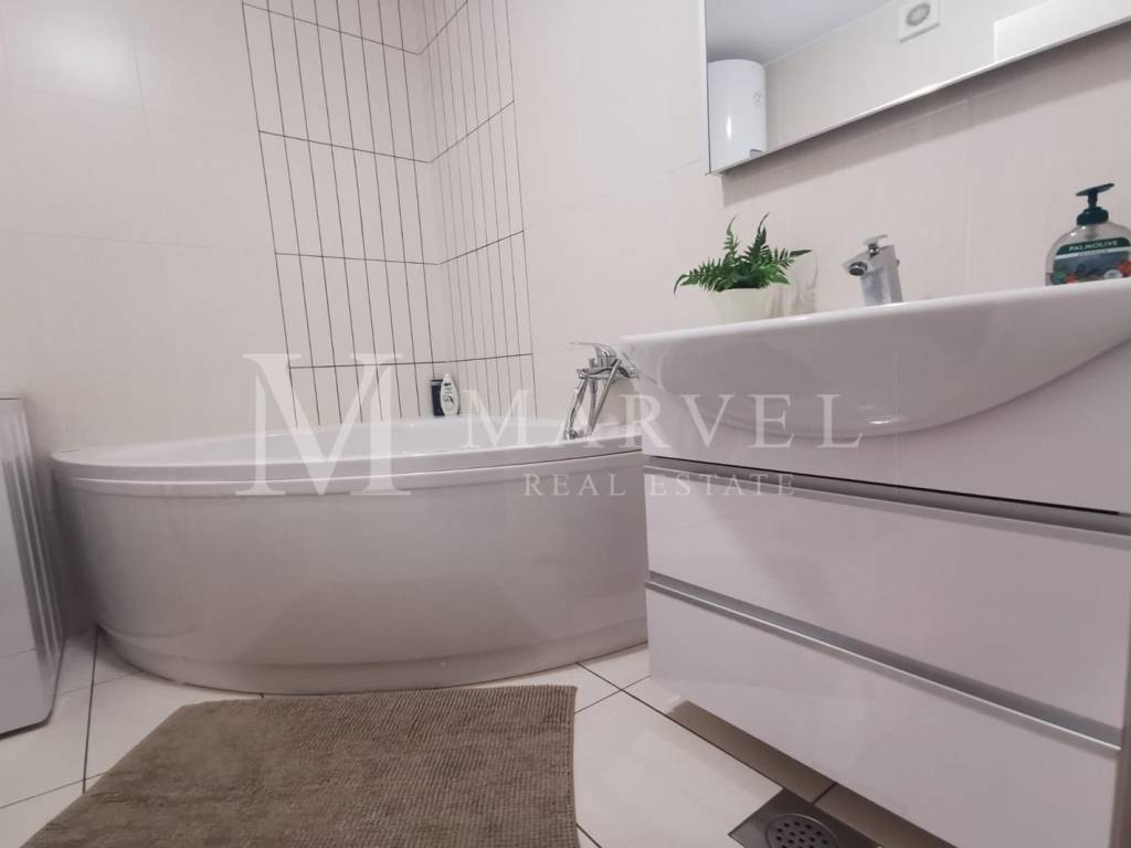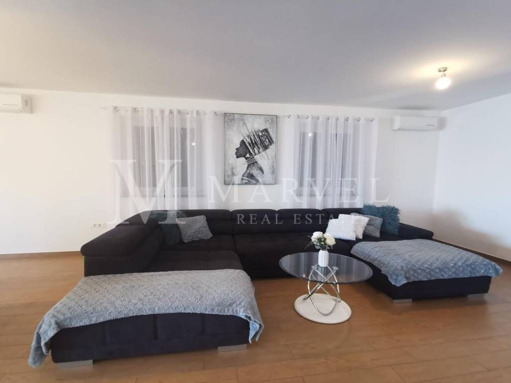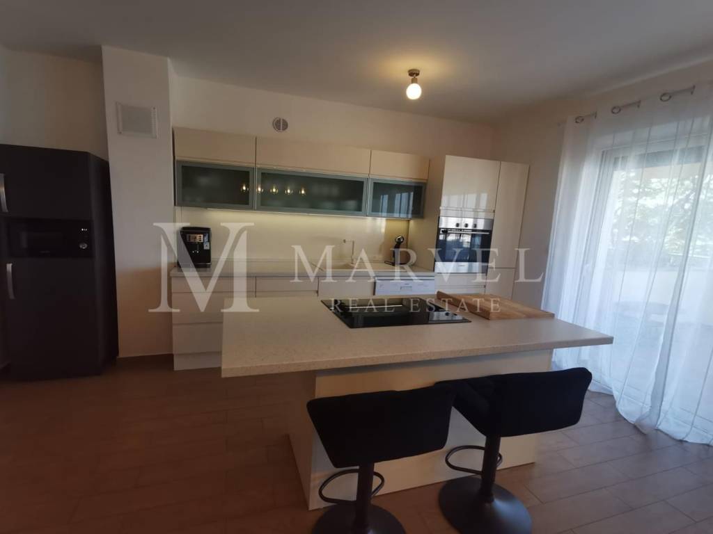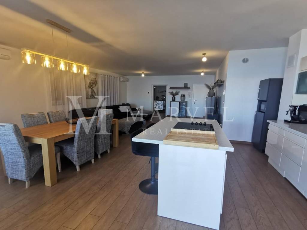 Three bedrooms, Two bathrooms, Large living room with kitchen and dining area. The kitchen opens to the front terrace of approx. 20 m, while there is also a smaller terrace on the side of the apartment, offering a stunning sea view and surrounding landscape.