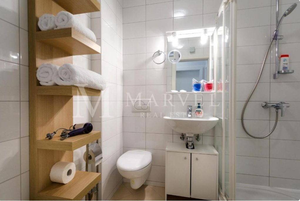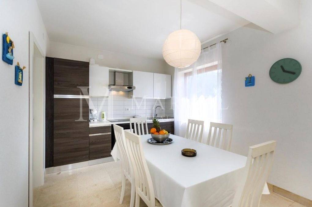 The kitchen with a dining area and the living room form the central space, and from the living room, there is access to a covered terrace with a beautiful sea view. The apartment is built with high-quality materials and is fully furnished and equipped, ready for immediate move-in.