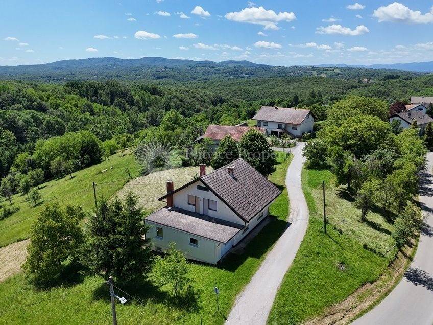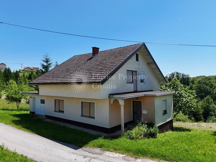 Situated in the scenic village of Škaljevica near Ozalj, this spacious family house or potential holiday home offers a fantastic opportunity for renovation and customization. Set on a 1,984 m parcel along the main road, the property provides easy access while maintaining a beautiful natural setting with breathtaking views of the surrounding hills and Žumberak Nature Park.