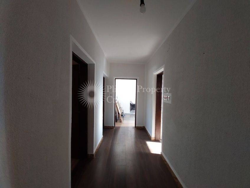 A wooden staircase leads to the first floor, which requires additional work but offers great potential. The layout includes a prepared space for a bathroom and three rooms, two of which have access to a terrace with stunning views, while the third room also has its own separate terrace.