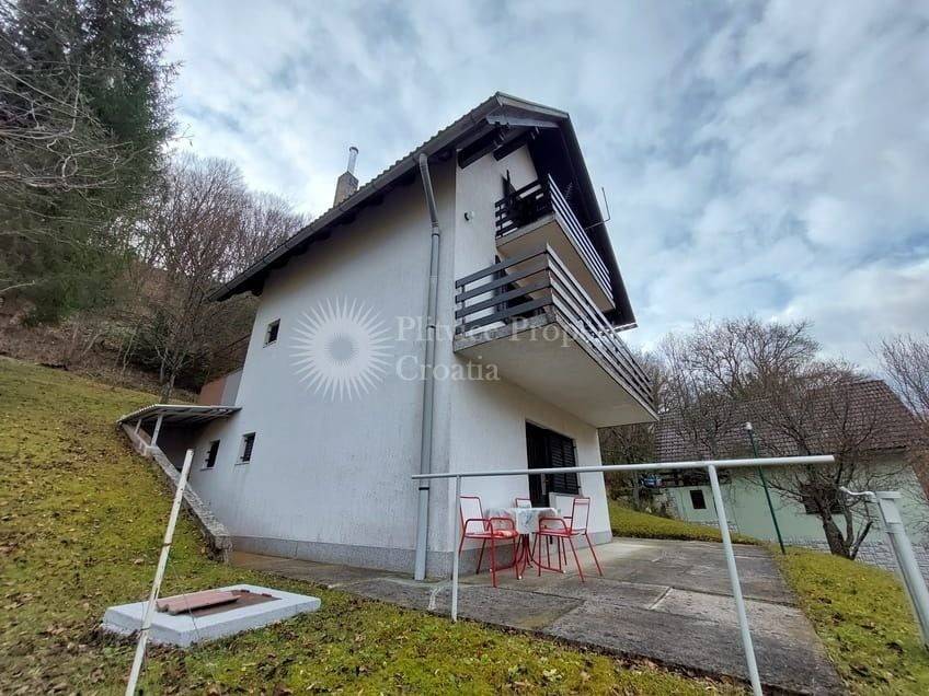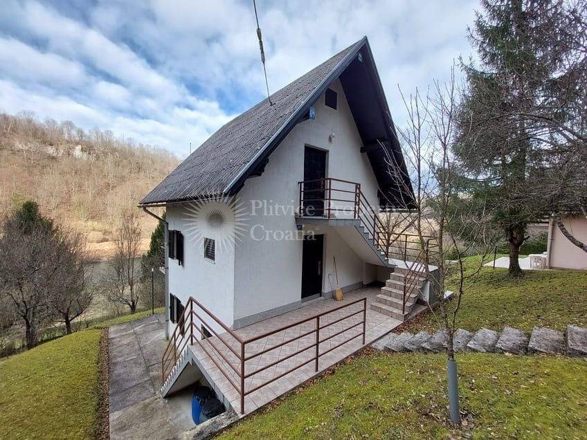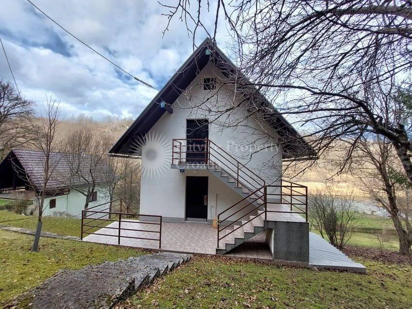 Nestled alongside the enchanting Korana river, this riverside retreat in Veljun offers serene living at its finest. Accessed via a convenient gravel road, the house is just 600 meters away from the asphalt road, ensuring both tranquility and accessibility.