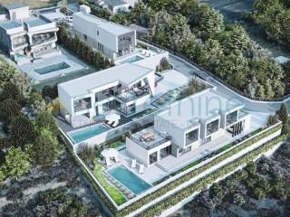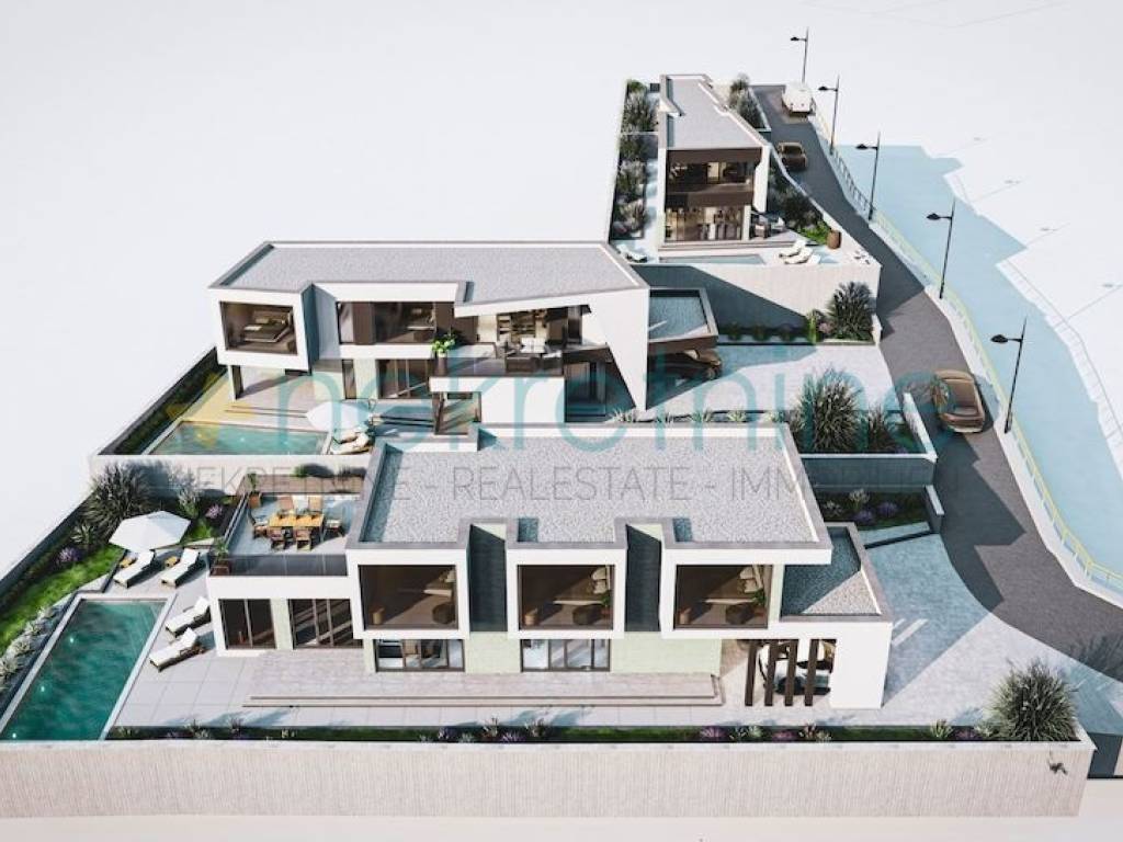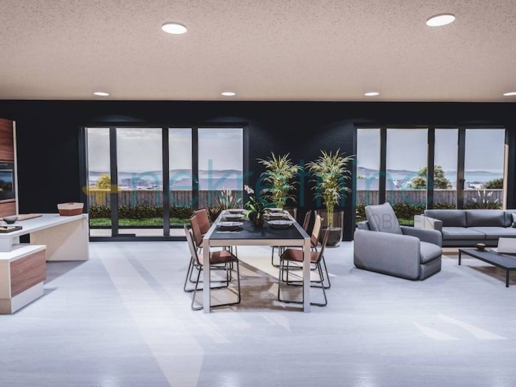 Kombinacija modernih linija i tradicionalnog kamena na pročeljima, sa velikim otvorima koji omogućavaju pogled na grad i na more iz svih soba.