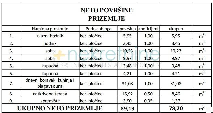 Parkirna mjesta: 1 za prizemlje, 2 za prvi kat, 2 i krovna terasa za drugi kat