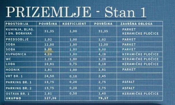 Neto obračunska površina stana s pripadcima iznosi 79,17m2
