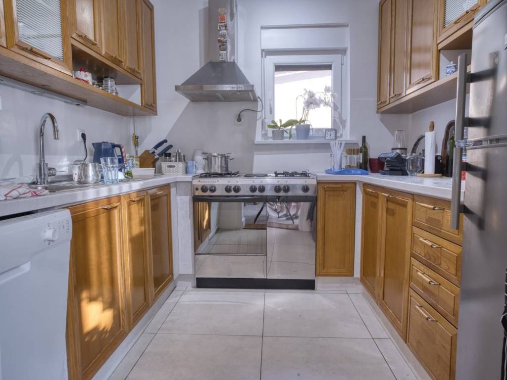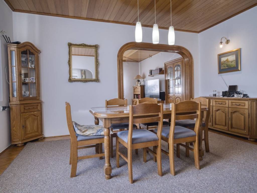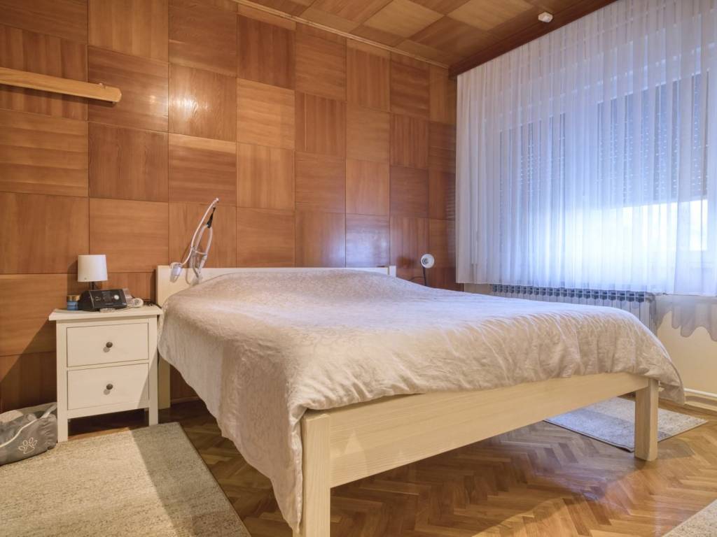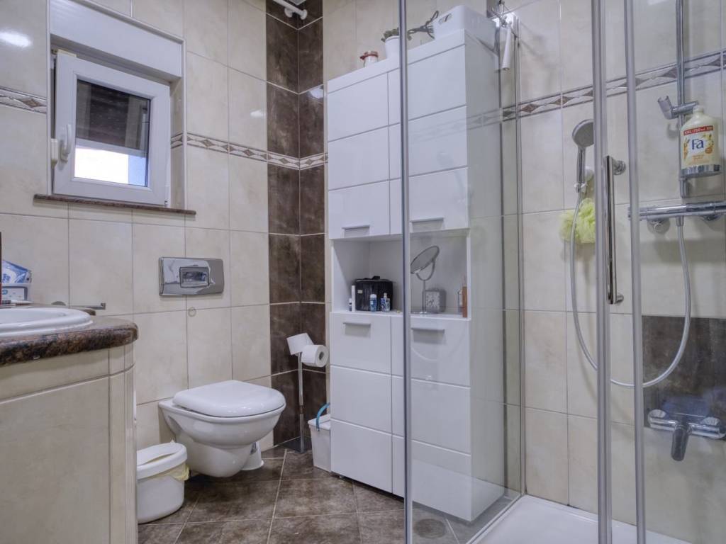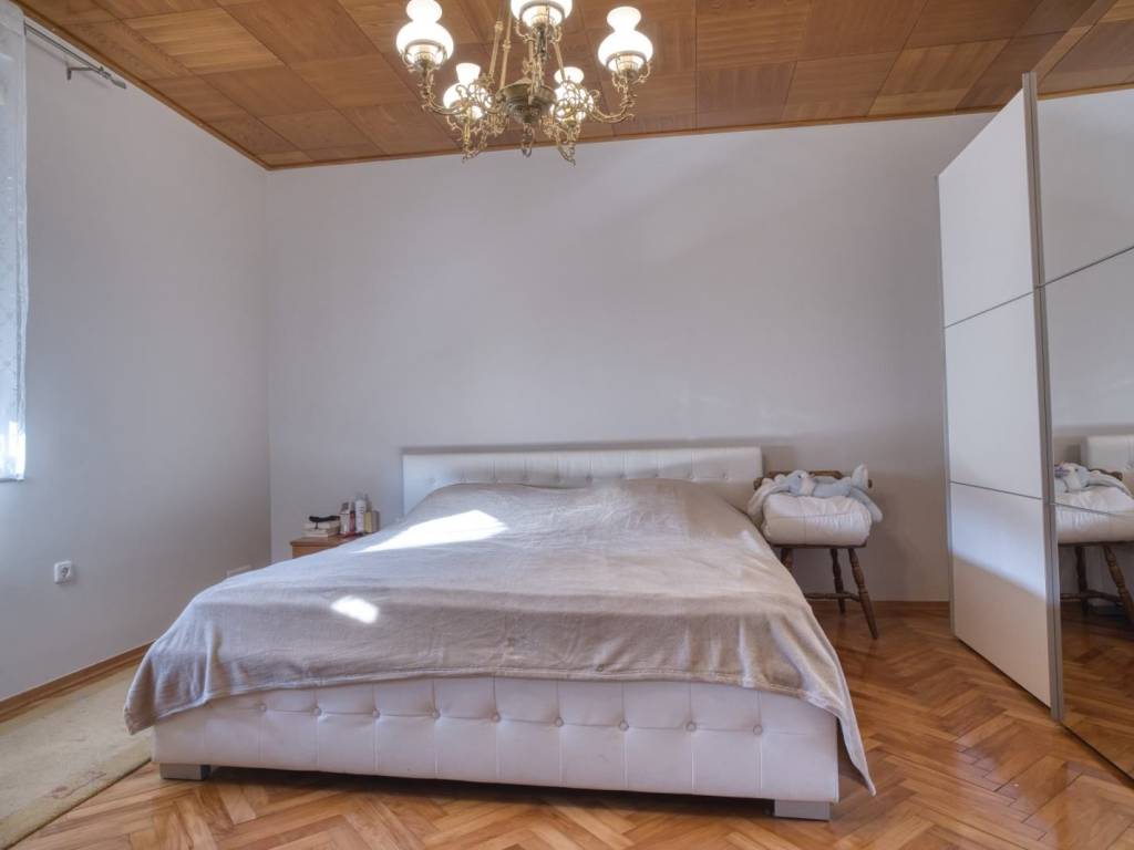 Prizemlje kuće sastoje od velikog ulaznog prostora, dnevnog boravka, blagovaone, kuhinje, dvije velike spavaće sobe i kupaonice s tušem.