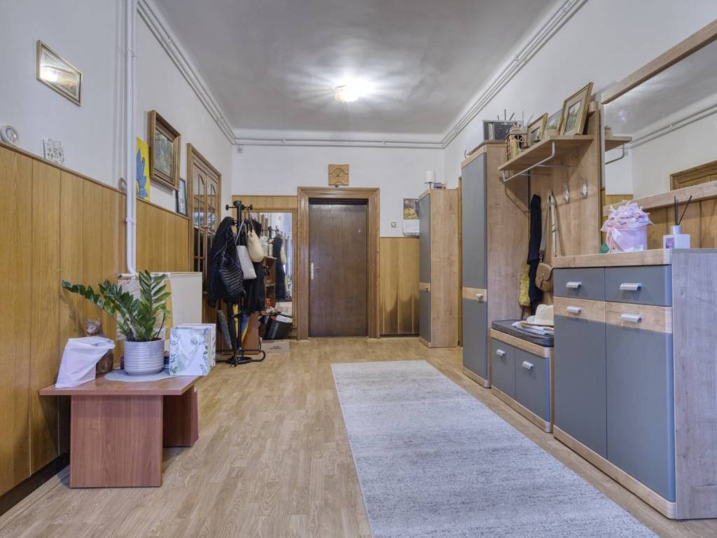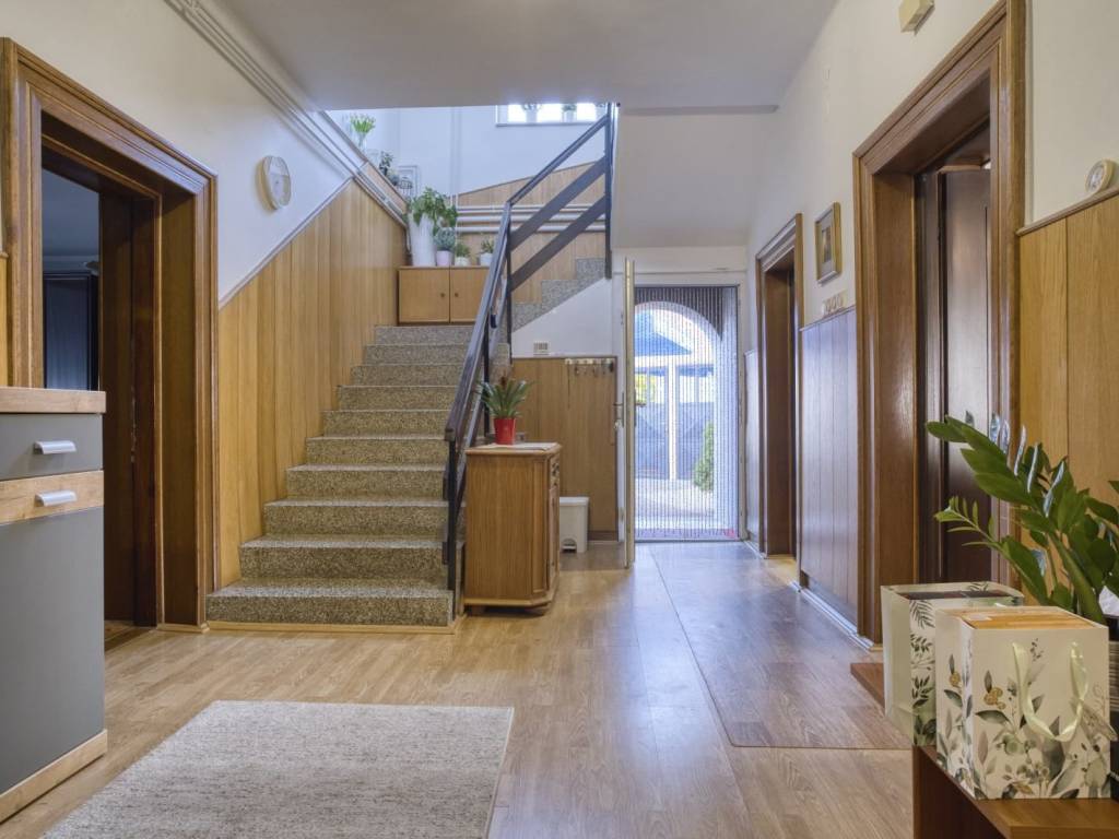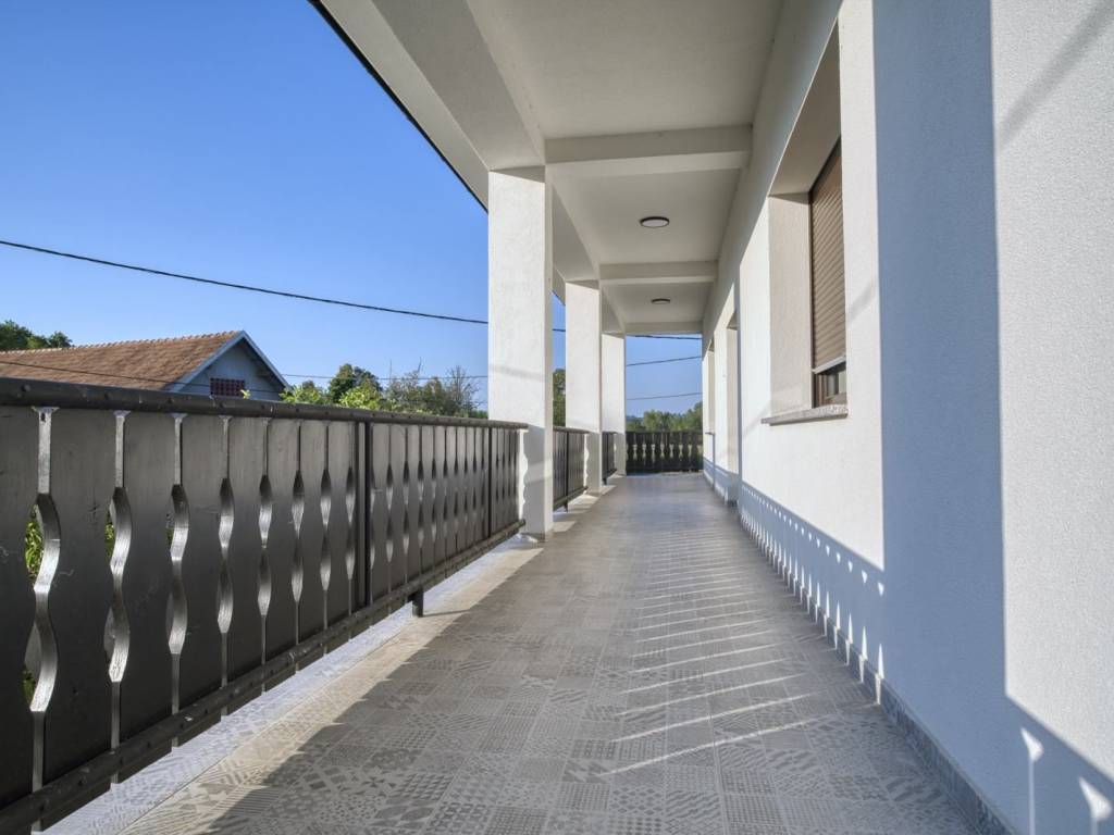 Obiteljska kuća ima tri ulaza: dva ulaza u prizemlju i jedan s velike terase na 1. katu, na koju vode vanjske stepenice. Ukupna stambena površina kuće je oko 270 m2 (prizemlje i kat), a ima i neuređeno potkrovlje s visokim stropom podne površine oko 130 m2.