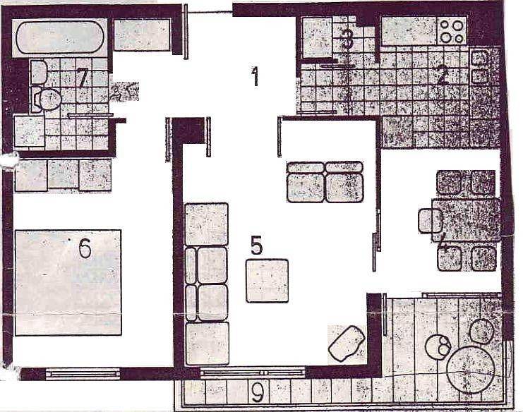 Površina stana iznosi 58,65 m2, a sastoji se od hodnika, dnevnog boravka s blagovaonskim dijelom,  kuhinje, ostave, odvojene spavaće sobe, kupaonice i zatvorene loggie.