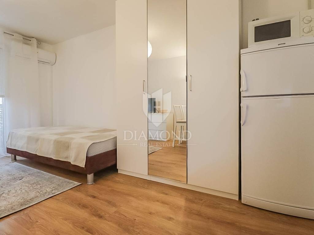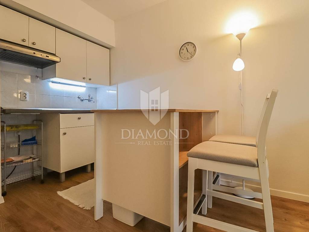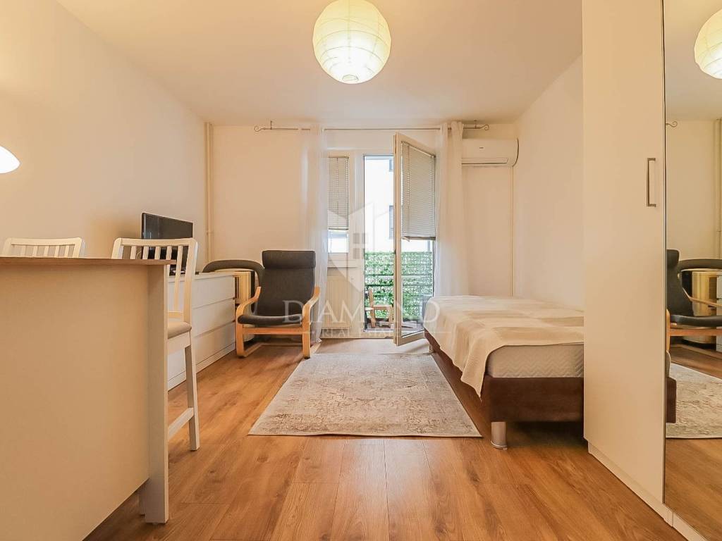 A fully furnished and modernly decorated studio apartment of 25 m2 is for sale. It is located on the first floor of a well-maintained building with an elevator (the building has a total of five floors). The apartment was renovated in 2025 and is ready to move in without additional investment. It consists of a functional living/bedroom area with access to a balcony, a modern kitchen and a bathroom.