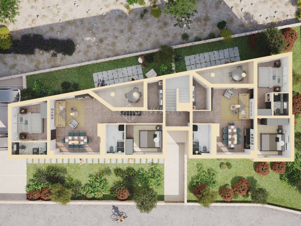 The building is under construction, with an expected completion in summer 2026. The project is executed according to modern construction and equipment standards, emphasizing material quality, energy efficiency, and modern design. It is located in a quiet part of Sukošan, third row from the beach, in close proximity to all amenities.