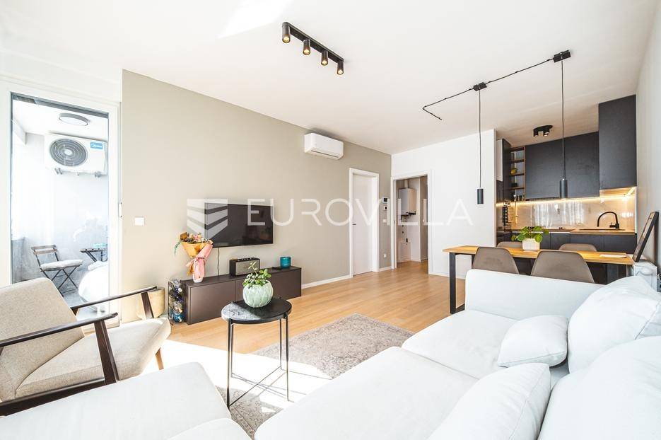 Grijanje je etažno plinsko centralno, a stan ima radijatore, klima uređaj i dodatno električno podno grijanje u kupaonici.Smješten je u zgradi suvremene arhitekture, građenoj visokokvalitetnim materijalima - fasada od kamene vune, troslojna stakla, Galeković parket, podno grijanje u dijelu stana te energetski učinkovita izvedba koja osigurava udobnost i niske režijske troškove.