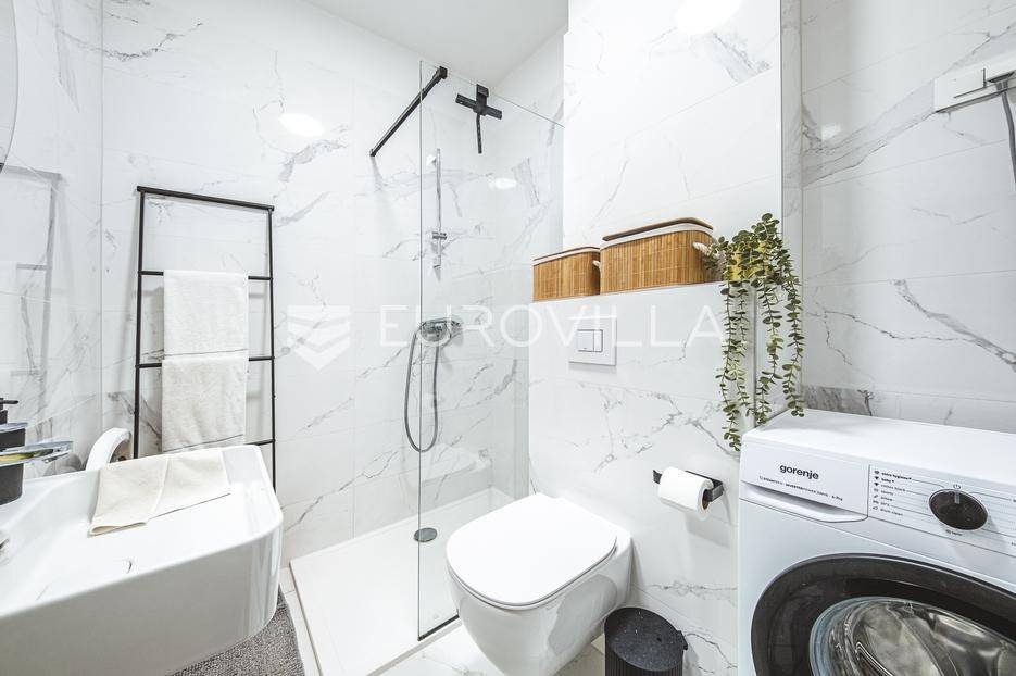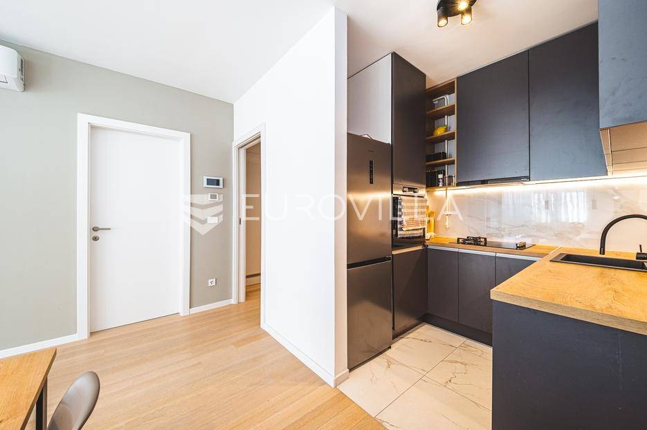 Zagreb, Lanište - moderan i potpuno namješten dvosobni stan na trećem katu novogradnje (2022.) s liftom.Stan se sastoji od ulaznog prostora, dnevnog boravka s blagovaonicom i kuhinjom, spavaće sobe, kupaonice te loggie. Stanu pripada i spremište površine 2,66 m².Stan je u potpunosti opremljen kvalitetnim namještajem i odmah useljiv. Uz stan dolazi mogućnost korištenja vanjskog parkirnog mjesta (dugoročni najam na neodređeno temeljem postojećeg ugovora).
