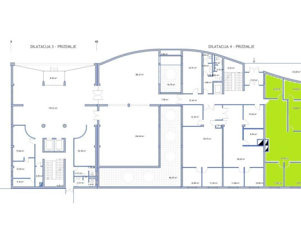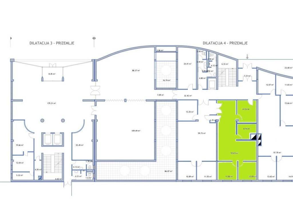 Višenamjenski poslovni prostori, pozicionirani na sveučilišnom kampusu, na prizemlju poslovne zgrade, ukupne površine 222 m2. Riječ je o dva fizički odvojena poslovna prostora od 126 m2 i 96 m2, sastavljenih od više manjih zasebnih prostorija, koji se nalaze jedan pored drugoga i koje je moguće povezati u jednu cjelinu, ovisno o potrebama zakupoprimca. Sanitarni čvor je zajednički za korištenje na cijeloj etaži. Prostor je dugi niz godina služio kao laboratorij, iznajmljuje se potpuno prazan te zahtijeva potpunu adaptaciju da bi se priveo svrsi. Prostor ima veliki broj prozora koji omogućavaju dosta dnevnog svjetla, a dodatna karakteristika je jednostavan i praktičan pristup sa glavnih prometnica. Prostrani besplatni parking se nalazi ispred zgrade, dok su dodatne opcije za parkiranje dostupne u neposrednoj blizini. Prostori imaju pristup preko glavnog ulaza u zgradu s recepcijom i zaštitarom, kao i preko drugog zasebnog ulaza s ulice direktno u prostor. Obzirom na sami potencijal lokacije, brojnu studentsku populaciju, te atraktivno poslovno okruženje, prostor predstavlja odličnu opciju za razne djelatnosti (ured, ordinacija, klinika te ostale zdravstvene i uslužne djelatnosti..).