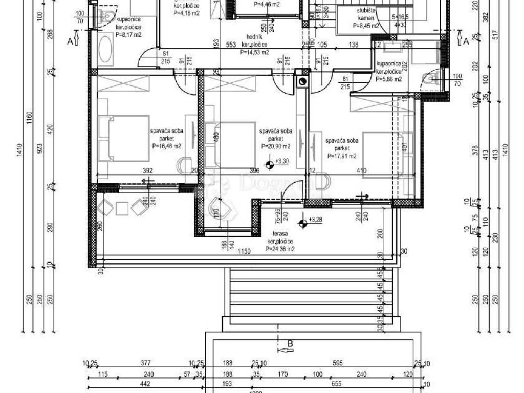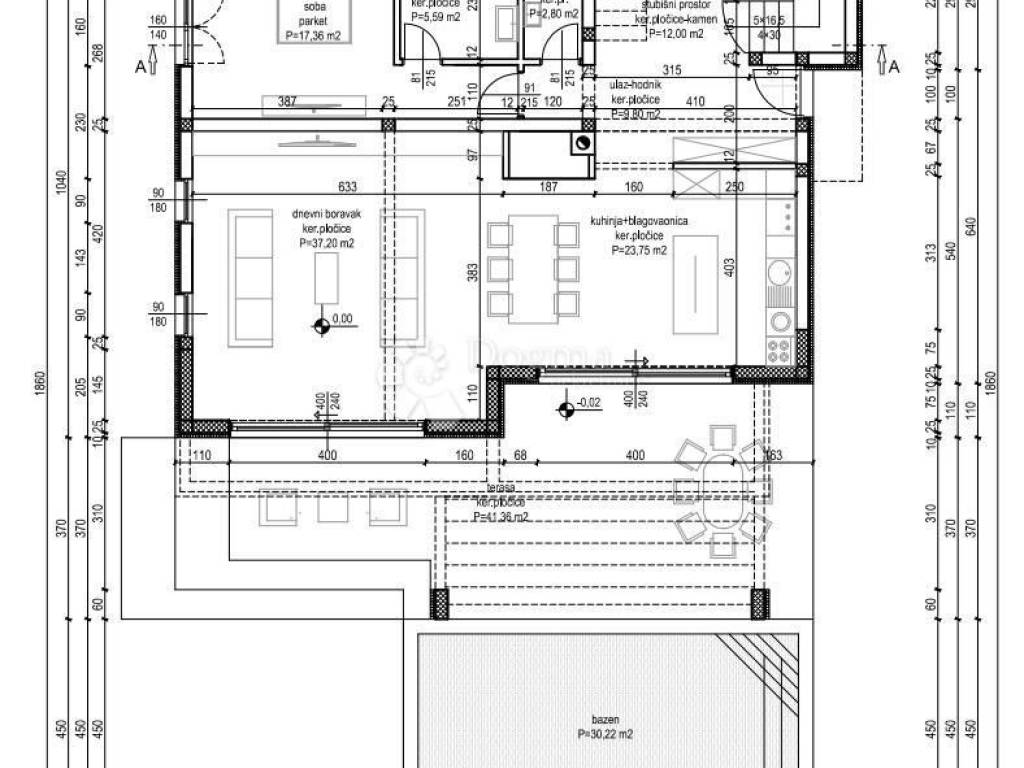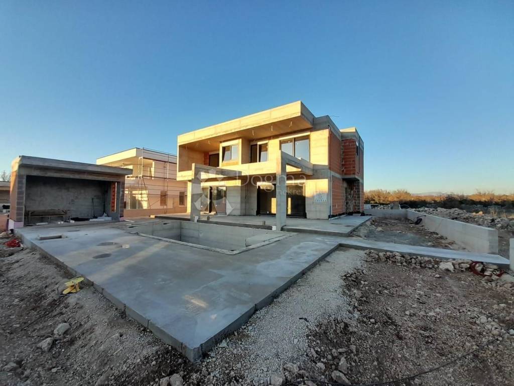 FOR SALE – LUXURY VILLA WITH POOL NEAR KRKA NATIONAL PARK A luxury villa with a swimming pool and an auxiliary building is for sale in the immediate vicinity of the Krka National Park. The villa is currently under construction, and the planned completion of works and move-in are scheduled for September 1, 2025. The villa consists of two floors and has a total net living area of 238 m². It is spatially designed to provide maximum comfort and functionality and consists of four bedrooms, three bathrooms, a separate toilet, a wardrobe and a spacious living area with a kitchen and dining room. The outdoor area includes a swimming pool with a sundeck, a covered terrace and a landscaped courtyard. The construction is carried out using high-quality materials according to the latest standards. Among the equipment we highlight: Joinery: – ALU Schuco AWS 75 entrance door, double-sided hidden leaf, security electric lock and code book – PVC Gealan lift-and-slide walls – Gealan S 9000 windows – Roller shutters with electric motors – Triple-layer glass and mosquito nets Heating and cooling: – Water underfloor heating – Built-in wood-burning fireplace – Air conditioning in all rooms – Preparation for a solar power plant on the roof Security: – Video surveillance Floor coverings: – Ceramics in living rooms, hallways, bathrooms and on the staircase (stone) – Three-layer parquet in the bedrooms Facade and exterior: – STO brand facade, 10 cm thick – Ceramic coverings on terraces and sundecks – ALU pergola above the pool area – Summer kitchen with barbecue – Covered parking – ALU fence on the surrounding walls, sliding patio door with electric motor Room layout: Ground floor (125.66 m²): Entrance, hallway, living room, kitchen and dining room, bedroom, bathroom, staircase, exit to the terrace with swimming pool and courtyard. On the ground floor there is also an auxiliary building with an area of 11.31 m², while the swimming pool has dimensions of 7.75 × 4 m (30.22 m²). First floor (111.99 m²): Three bedrooms, two bathrooms, wardrobe, hallway, staircase, balcony and loggia. The villa has secured space for five parking spaces. The distance from the sea and the nearest beach is approximately 5 km as the crow flies. Price: €745,000.00 For all additional information and to arrange a viewing date, please feel free to contact us. ID CODE: DA100066241 Ante Goleš Agent s licencom Mob: 099/222-3054 Tel: 022/646-360, 022/646-361 E-mail: ante.goles@dogma-nekretnine.com www.dogma-dalmacija.com