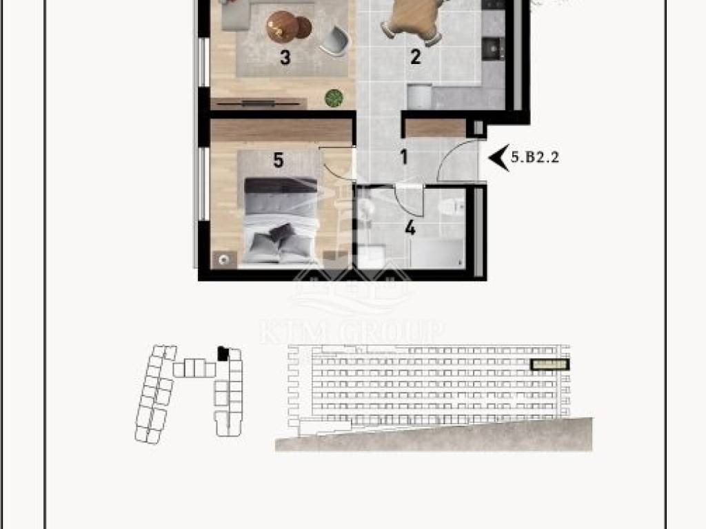 APARTMENT 5.B1.1|52.89m2|2-bedroom |4,300.00 €/m² | € 227,427.00 | FREE