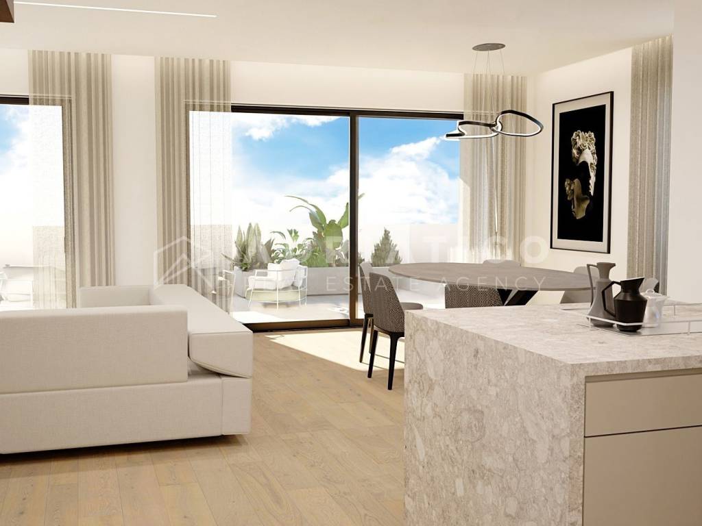 Just a 5-minute walk to the center and all important amenities, this top-quality new building with a total of four apartments is located on a one-way street. The first-floor apartment with a living area of 189m2 consists of an entrance hall, kitchen, dining room, and spacious living room combined with access to a large terrace, three bedrooms with en-suite bathrooms and walk-in closets, a balcony, a utility room, and a toilet. The apartment includes a storage room in the building's basement and two parking spaces in the garage. Key features: