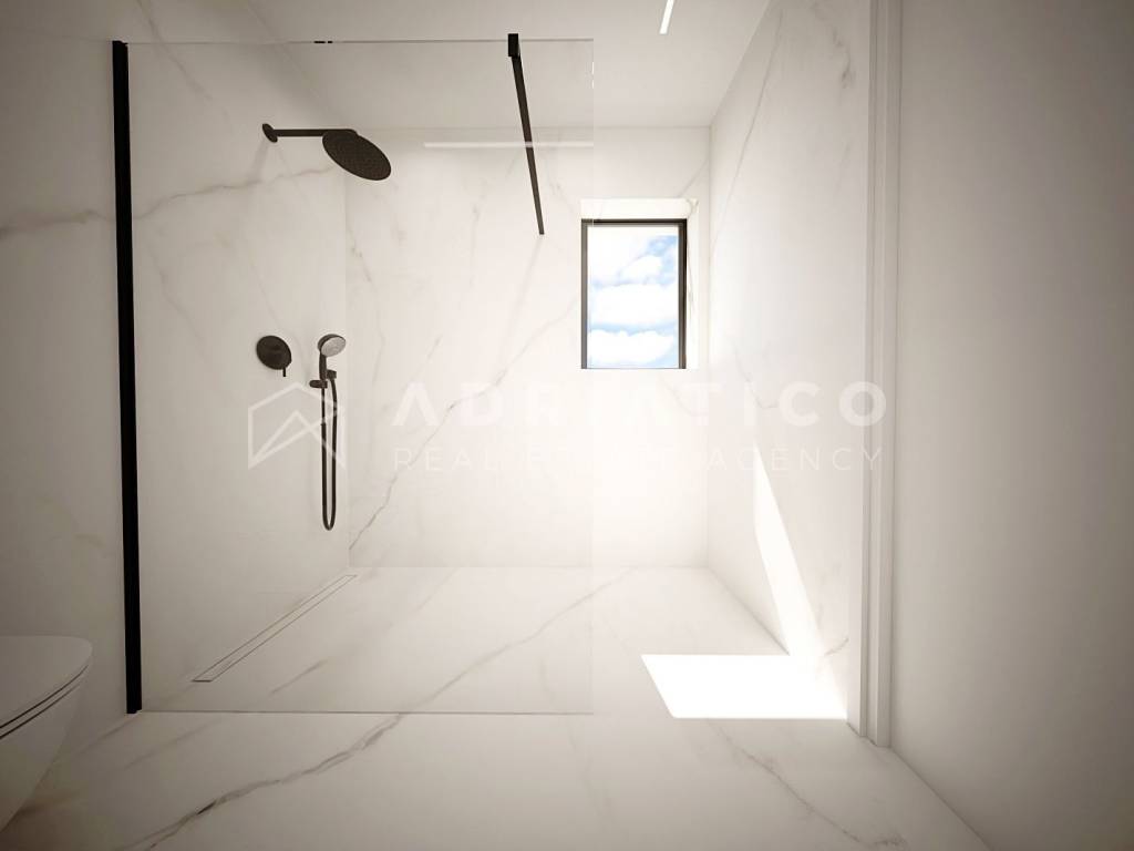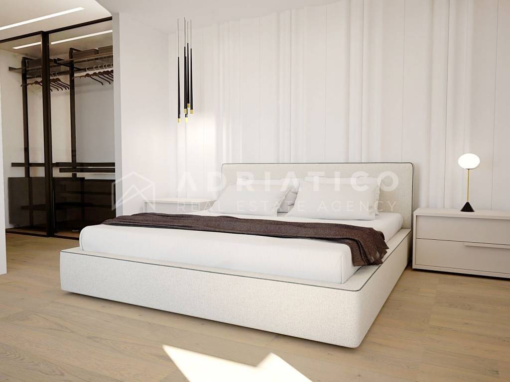Schuco AWS/ADS 70HI window profiles; Schuco ASE 80HI sliding doors; Triple glazing with the highest thermal and sound coefficients; Hella blinds on all windows and sliding doors with a wind sensor; Underfloor heating with Mitsubishi Electric heat pumps controlled via WiFi; Cooling separately with Mitsubishi Electric, controlled via WiFi; 1st class parquet; 1st class tiles; 20cm façade insulation; Anti-burglary doors; Video surveillance of the building; Video intercom; Elevator; Parking spaces in the building's basement; Storage room in the building's basement; Electric car chargers at the parking spaces.