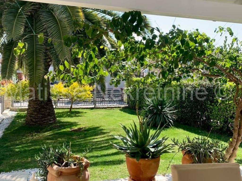 Na prvom katu je veliki dvosobni stan ( dnevni boravak, blagavaona s kuhinjom, 2 spavaće sobe, kupaona i odvojeni toalet). pov cca 100m2. Blagavaona je zapravo velika terasa ustakljeno sa dvije strane, tako da se iz nje pruža pogled na zeleno okruženje i more.