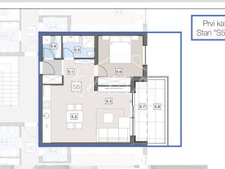 A one-bedroom apartment on the first floor of a new, modern urban villa is for sale.