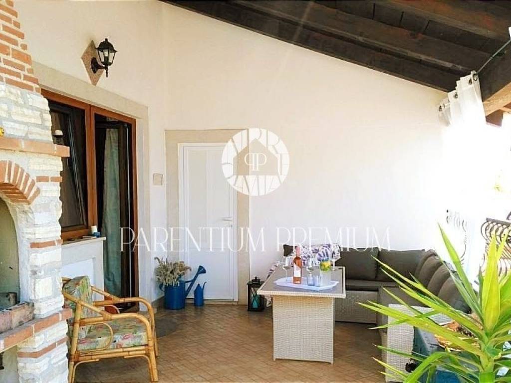 Poreč, IstriaOnly 5 km from the sea and the city center is this beautiful one-story house with an area of ​​116.83 m2 and a garden of 370 m2.The house was built in 2008 and completely renovated in 2017.A thermal facade with a thickness of 8 cm was installed, the covering is tiles, heating and cooling via two air conditioning units with a total thermal output of 13.5 kW, external PVC carpentry, central heating with a heat pump, solar collectors for hot water preparation, photovoltaic power plant 2.1 kw, satellite and TV reception is installed in all rooms.The house consists of an entrance hall, a spacious living room, a kitchen with a dining room, two bedrooms and a bathroom, and a gallery with another bedroom.The house is fully furnished and prepared for rent, categorized, so it is an ideal investment for a tourist rental or a quiet family life.