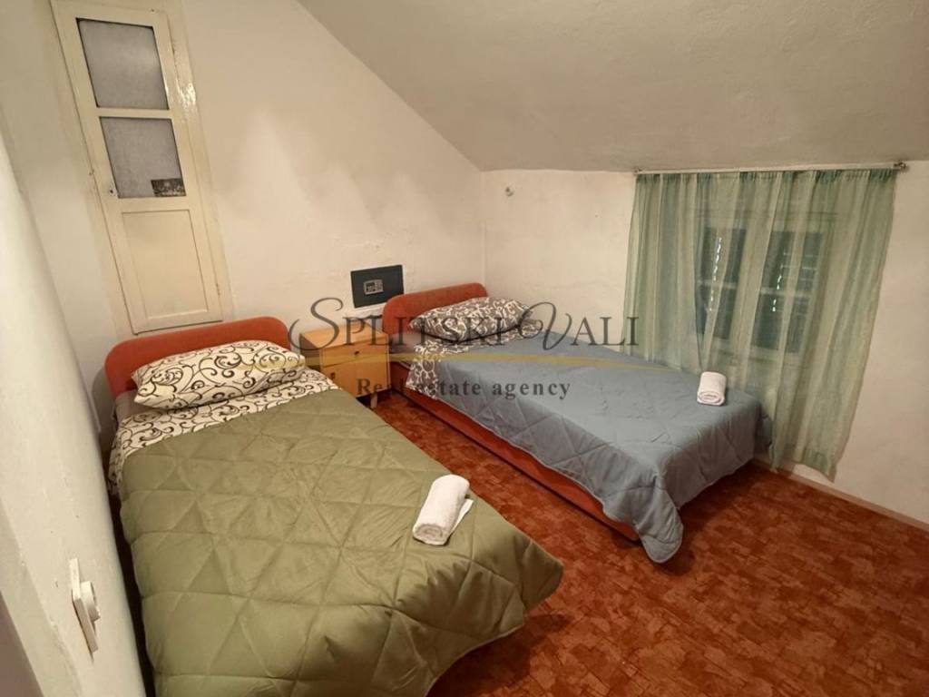 U samom srcu stare jezgre Kaštel Lukšića nalazi se kamena kuća koja odiše poviješću i mediteranskim duhom. Kuća se prostire na tri etaže i niskom potkrovlju, a na vrhu se nalazi terasa idealna za opuštanje i uživanje u pogledu na okolinu.U prizemlju se nalazi potpuno opremljena kuhinja s blagovaonicom, prostrani dnevni boravak te kupaonica. Na gornjim katovima smještene su četiri udobne sobe raspoređene na dvije etaže, svaka s vlastitim toaletom. Kuća je funkcionalna, prostrana i pruža ugodan boravak većem broju osoba.Dostupna je za najam tijekom cijele godine, a zbog rasporeda i lokacije posebno je pogodna za smještaj radnika. Uz kuću dolazi i jedno vanjsko parking mjesto.Najmoprimac plaća agencijsku proviziju u visini jedne najamnine.Za razgled i više informacija kontaktirati na broj 0991600441 Antonija