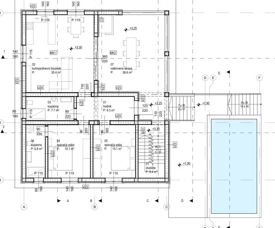 Hvar, Jelsa, dvosoban stan u izgradnji smješten na prvom katu manjeg stambeno poslovnog objekta.Površina zatvorenog dijela je 89.40 m2.Sastoji se od hodnika, kuhinje s blagovaonicom, kupaonice, spavaće sobe, dnevnog boravka, spavaće sobe s privatnom kupaonicom te natkrivene terase površine 38.6 m2.Također mu pripada i privatni bazen površine 28.9 m2.Dva vanjska parking mjesta su uračunata u cijenu.Stan u Jelsi nije samo investicija u nekretninu, već i u kvalitetniji, mirniji i sunčaniji način života na jednom od najljepših otoka Mediterana.Za dodatna pitanja, stojimo Vam na raspolaganju.