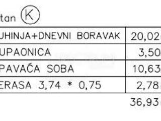 The apartment is located on the 3rd floor of a newly built residential building with 11 residential units. The apartment has a surface area of ​​36.93 m2. The apartment consists of a living room with an open-space kitchen and dining room, a bedroom, a bathroom and a covered terrace. The terrace offers a view of Tar and nature.