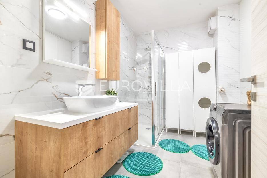 Zagreb, Sloboština, moderan trosobni stan na trećem katu novogradnje s liftom, zatvorene površine 68,10 m² s lođom površine 12,62 m² i vanjskim parkirnim mjestom površine 12,50 m², ukupni NKP 81 m².Sastoji se od hodnika, prostranog dnevnog boravka, kuhinje s blagovaonicom, dvije spavaće sobe (od kojih jedna ima izlaz na lođu), kupaonice s WC-om te ostave.Prodaje se potpuno opremljen namještajem izrađenim po mjeri. Pri uređenju su korišteni visokokvalitetni materijali i oprema: podno grijanje, klima uređaj, PVC stolarija, protuprovalna vrata, vrhunska keramika i sanitarije. Stan je odmah useljiv, bez potrebe za dodatnim ulaganjima.Zgrada je izgrađena 2023. godine od strane renomiranog investitora te se odlikuje visokom kvalitetom gradnje i energetskim certifikatom A+.Lokacija je izvrsna - savršena za obiteljski život, s neposrednim pristupom javnom prijevozu. U blizini se nalaze trgovački centri (Avenue Mall), tržnice, kina, muzeji i brojni sportski sadržaji, što ovu nekretninu čini idealnim spojem mirnog obiteljskog života i urbanog komfora.Brza prometna povezanost omogućuje jednostavan pristup svim dijelovima grada, autocesti i zračnoj luci, dok je centar udaljen svega nekoliko minuta vožnje.Ostale informacije dostupne su na upit.