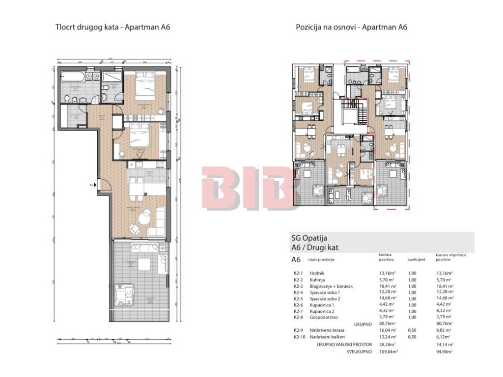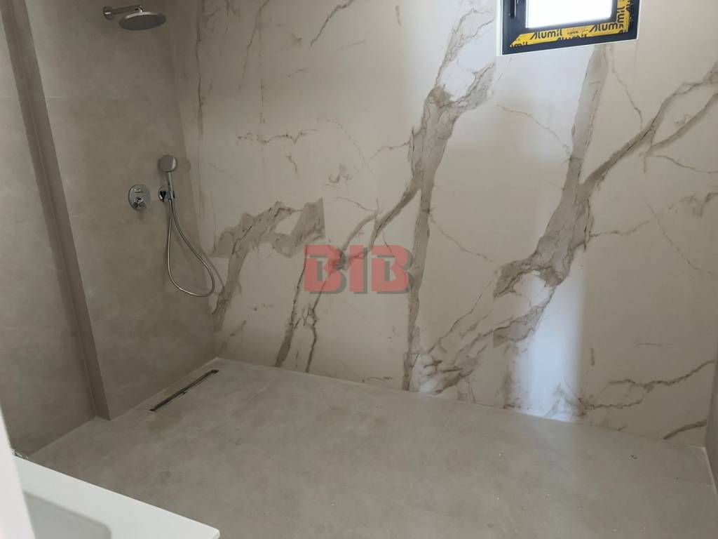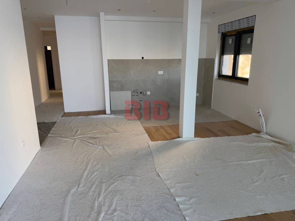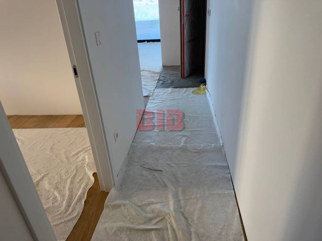 Stan se sastoji od hodnika,dvije spavaće sobe,dvije kupaonice,kuhinje,dnevnog boravka,gospodarstva,natkrivene terase i natkrivenog balkona,ukupne korisne površine 94,90m2,te garažnog mjesta pobršine 15m2( 15x05=7,5m2) i spremišta površine 5m2( 5x05= 2,5m2),sveukupne korisne površine 104,90m2.Vrhunska gradnja i oprema,grijanje dizalicom topline,kvalitetna keramika,sanitarije i podne obloge,alu stolarija,lift.U tijeku gradnja.Predviđeni rok završetka kraj ove godine.
