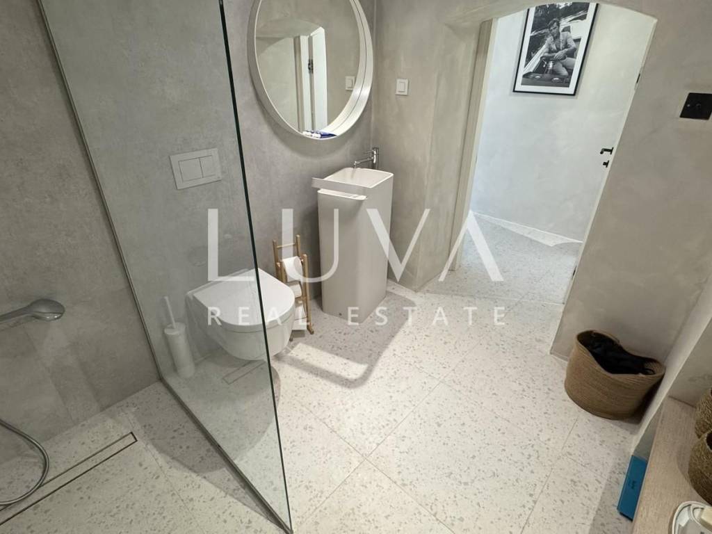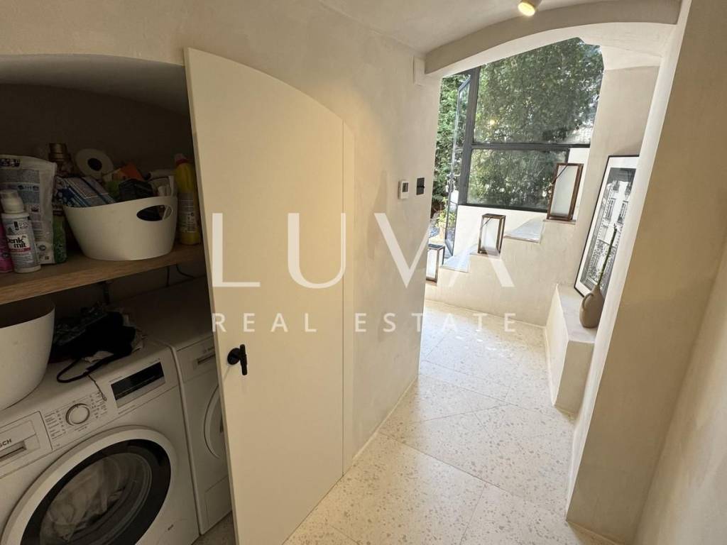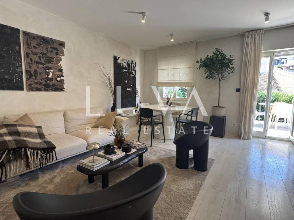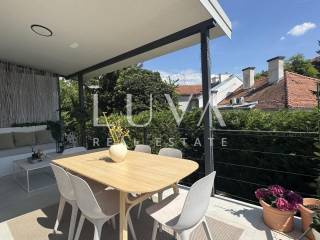 The apartment is located in the prestigious Vinogradska street, situated in a house. This is a unique 120 m2 duplex apartment that perfectly combines historical charm with modern design. The upper floor offers a spacious living room with an integrated kitchen and dining area, a bedroom, separate toilet, and a terrace with enchanting views of the greenery.