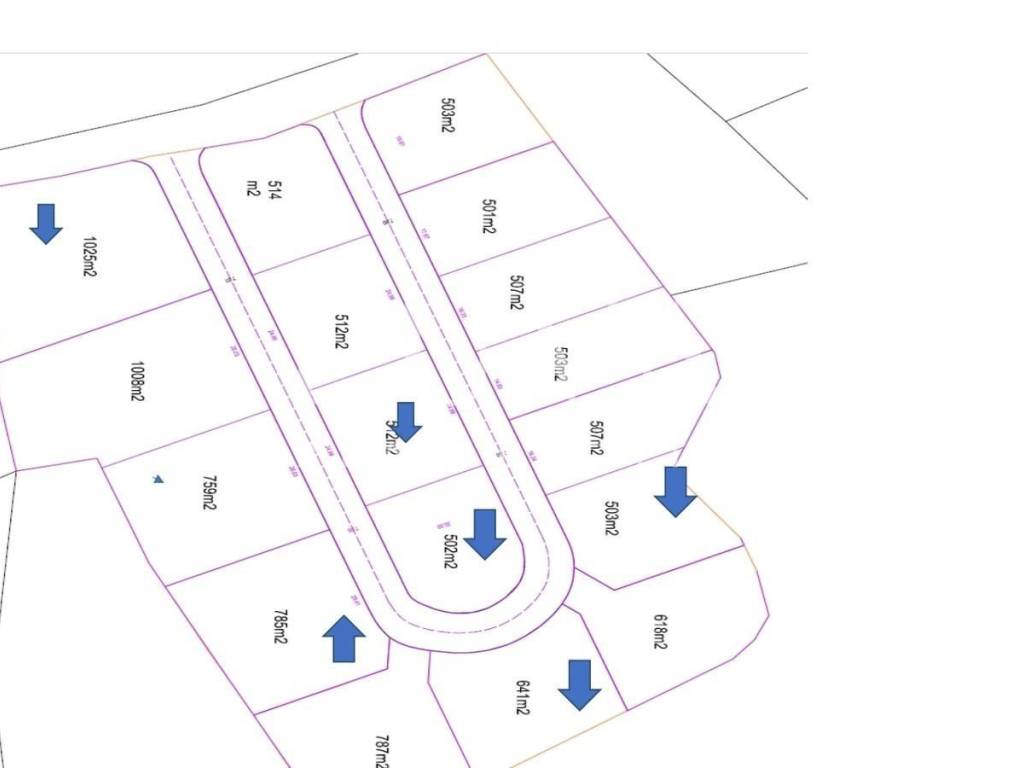 Parcela površine 12.000 m2 podijeljena je na 17 pojedinačnih zemljišta s namjenom za izgradnju turističkog naselja.