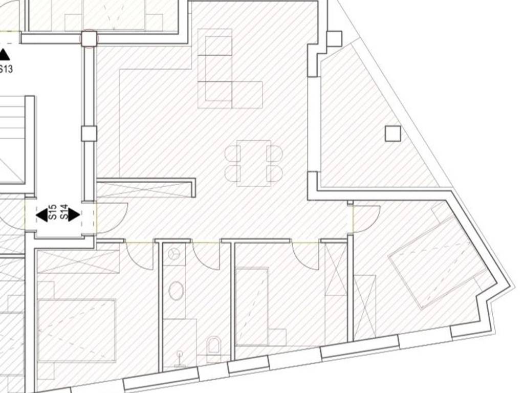 APARTMENT S14 on the 3rd floor WITH A ROOF TERRACE, three bedrooms, consists of a hallway, kitchen with dining room and living room (floor area 25 m2), three bedrooms (floor area 11.50 m2, 11.10 m2 and 8.52 m2), bathroom (floor area 5.88 m2) and loggia (7.10 m2 x 0.75 = 5.33 m2).
